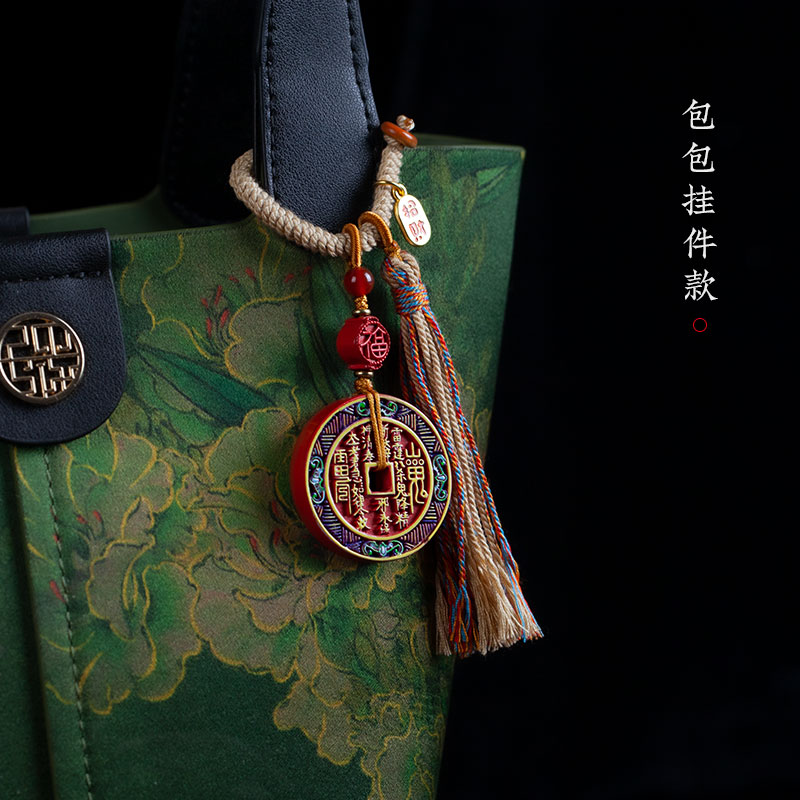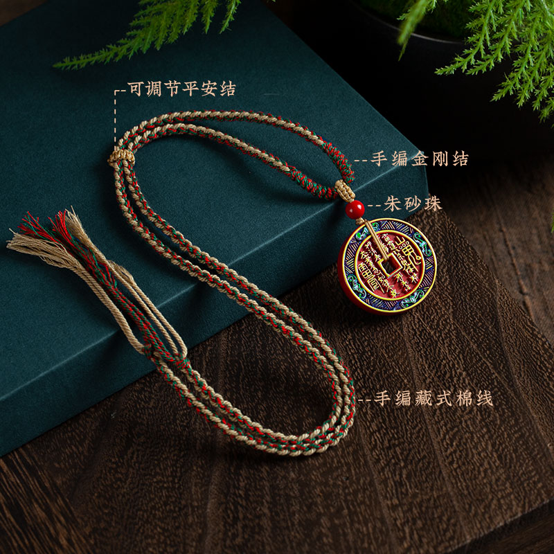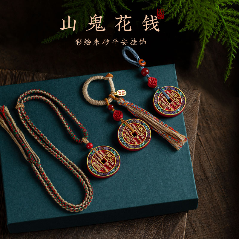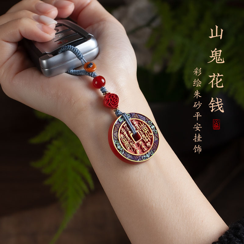 朱砂彩绘山鬼花钱吊坠女项链男本命年护身符钥匙扣挂件平安创意礼
