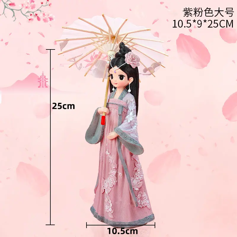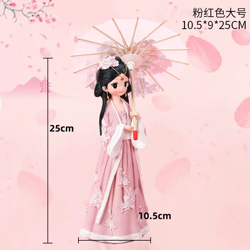 国潮汉服打伞女孩心学生礼品宫廷风房间装饰旅游工艺品摆件