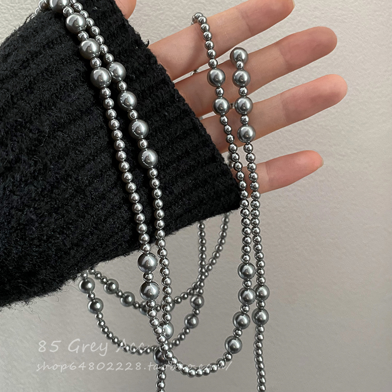 施家真多麻灰色长款多层叠戴珍珠项链女轻奢气质锁骨链毛衣链颈链