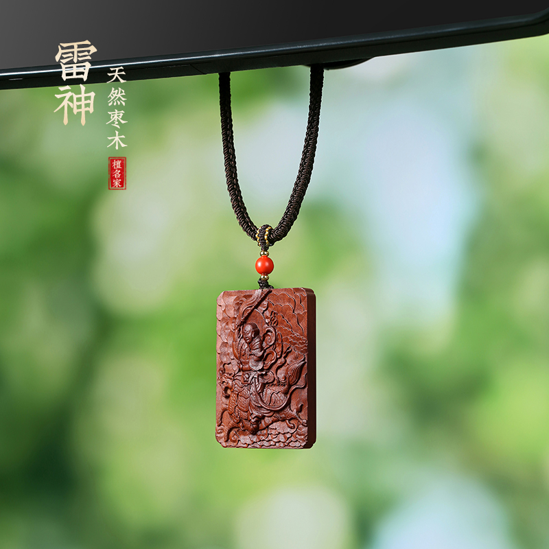 天然枣木雷祖大帝吊坠项链雷神九天应元雷声普化天尊车挂钥匙扣