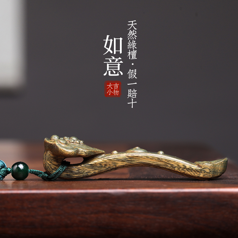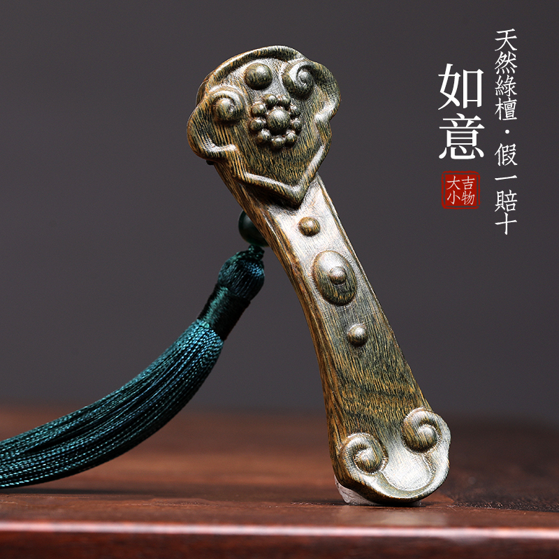 天然绿檀木雕刻事事如意手把件流苏手把玩中式好运摆件桌面工艺品