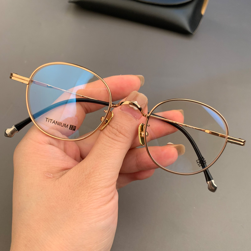 新品百搭款眼镜框架小圆形椭圆形高度数近视小脸适用全框纯钛超轻