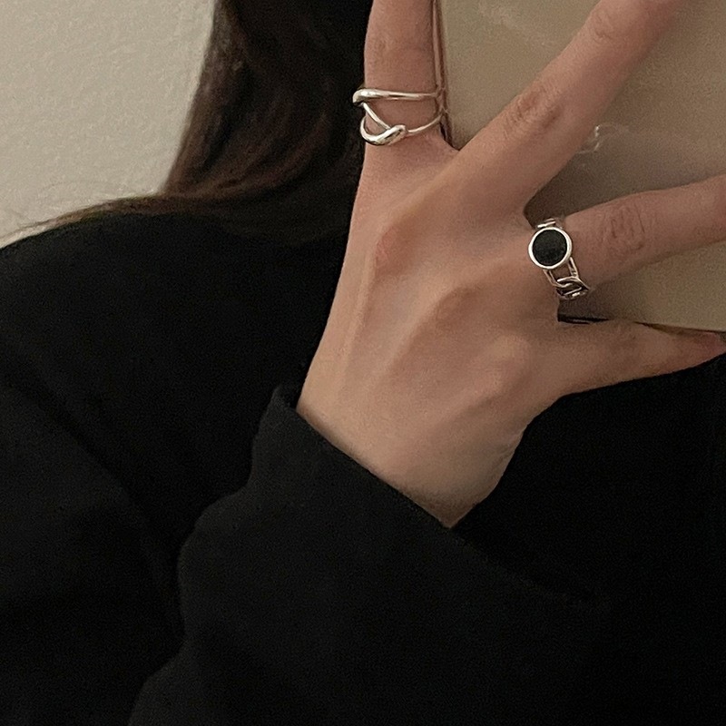 时尚不规则线条戒指女欧美风街头潮食指戒简约开口可调节指环饰品
