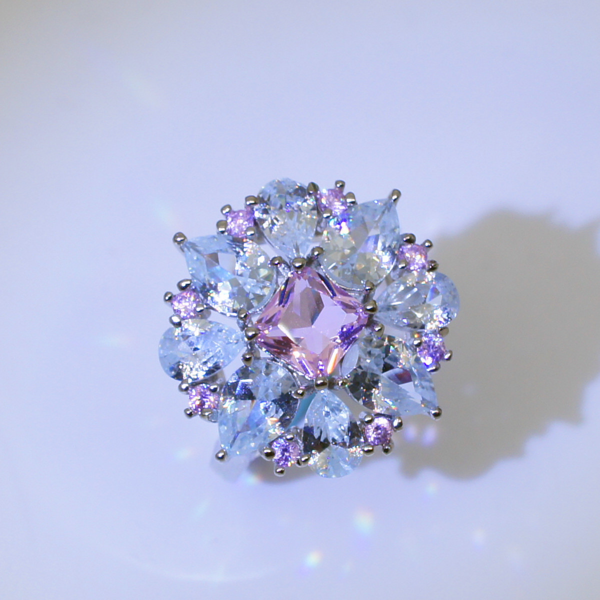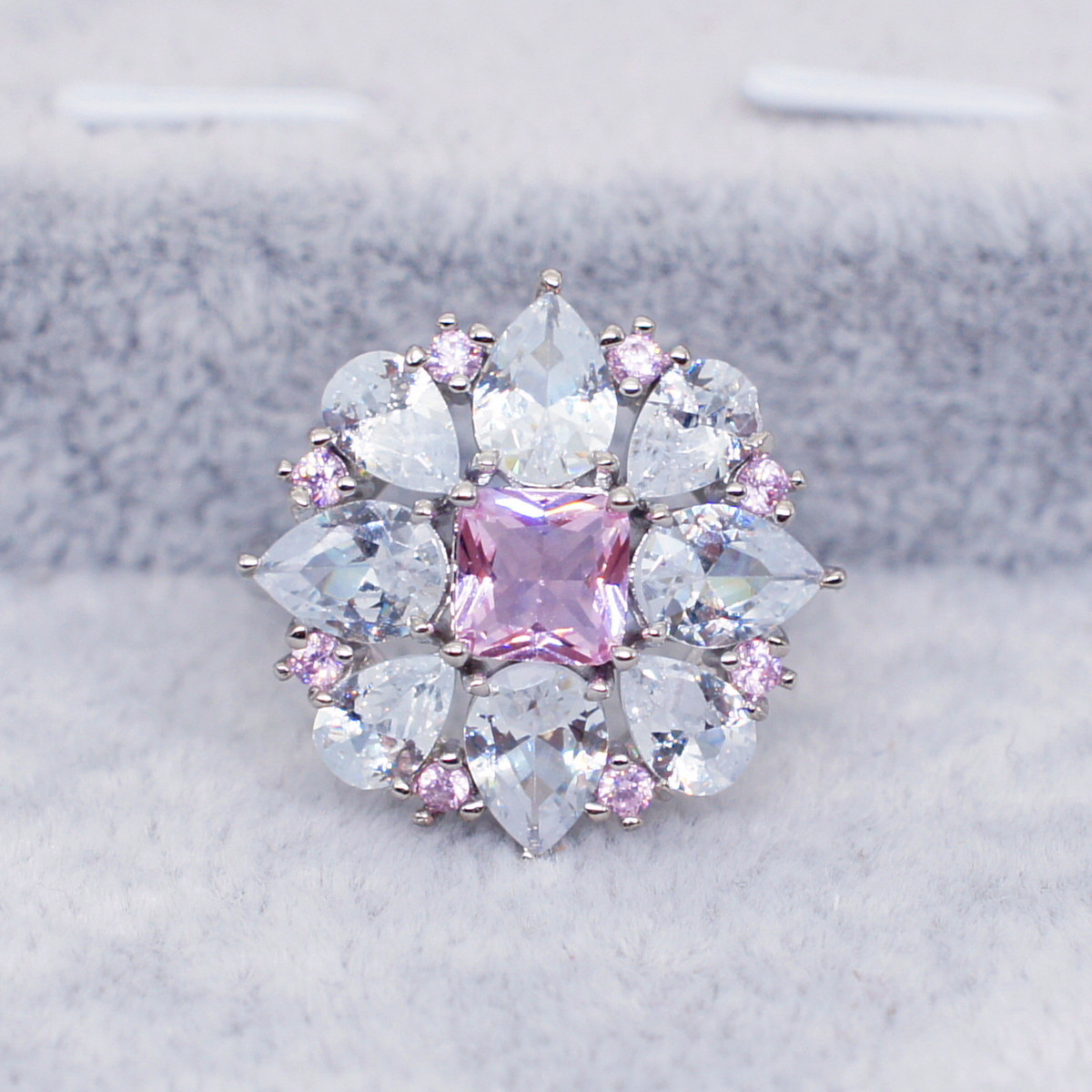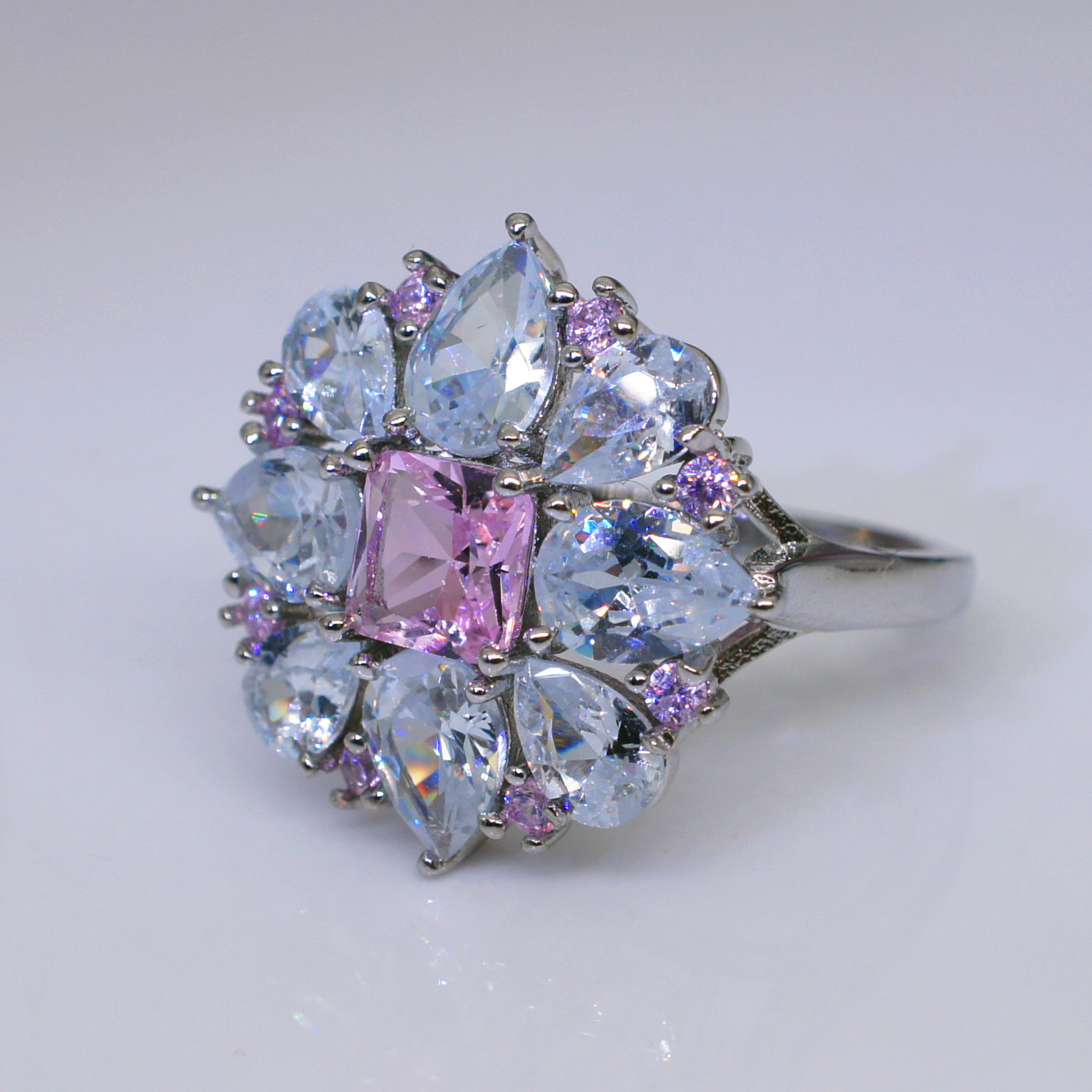 Youngwish新款热卖粉水晶方钻公主戒指 欧美镶嵌水滴梨形锆石指环
