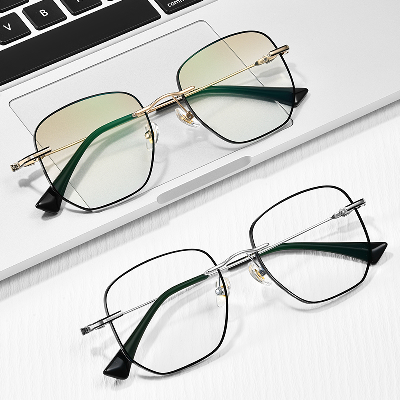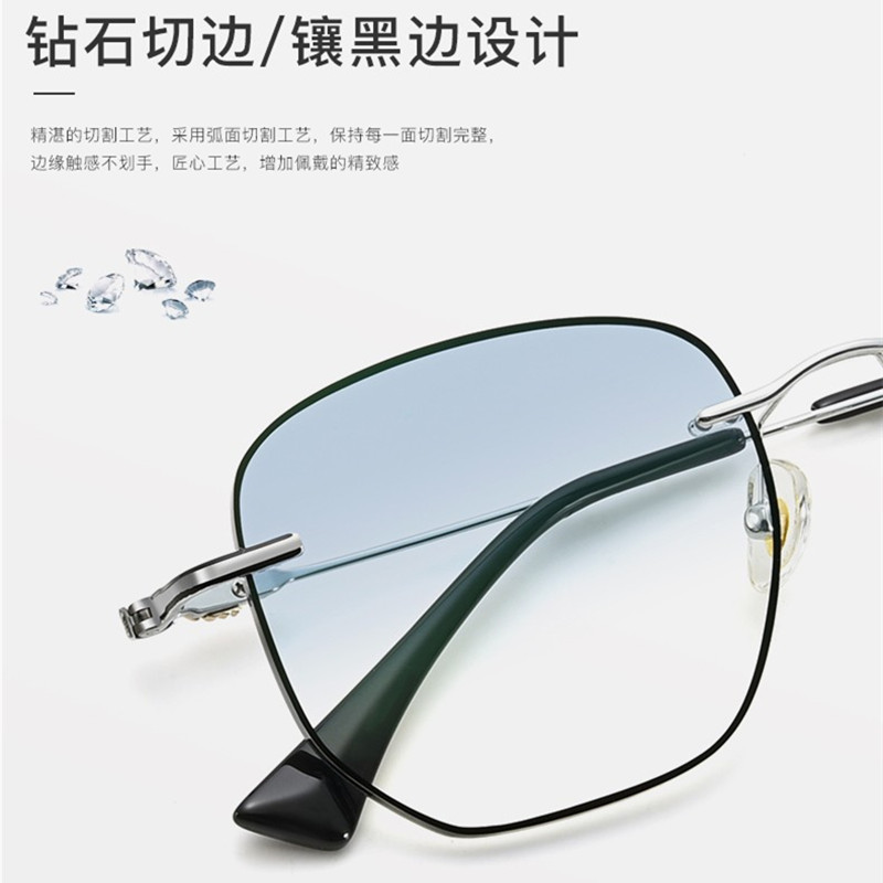 纯钛无框眼镜男变色防蓝光近视女配防雾有度数大脸镶黑无边框眼睛