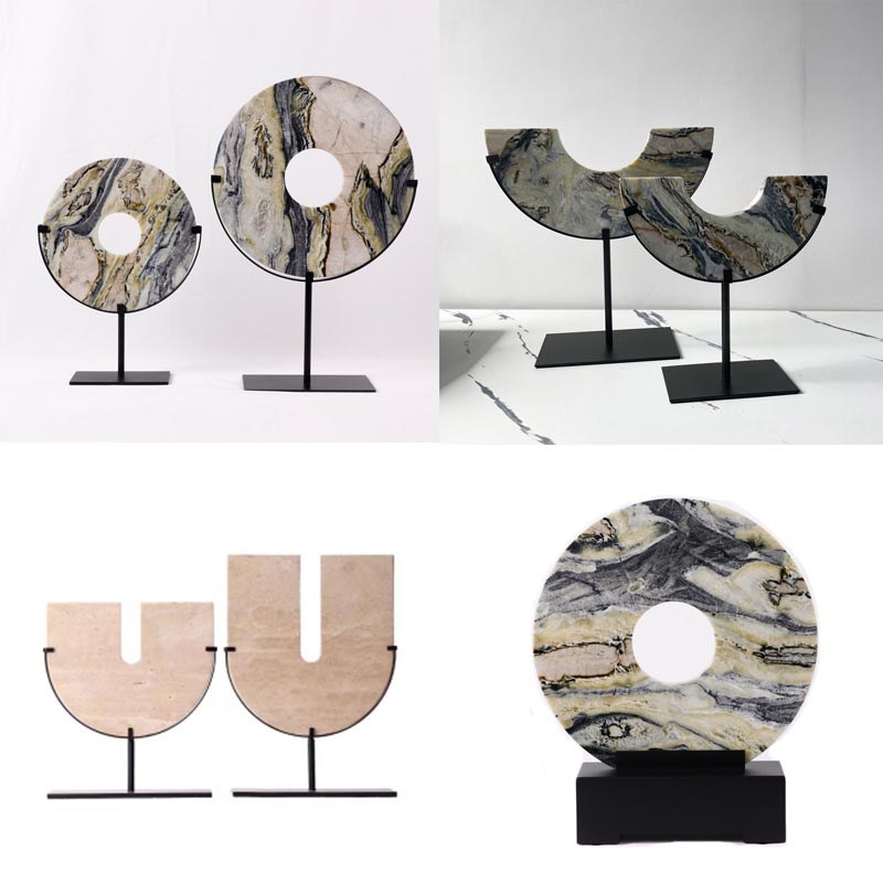新中式大理石半圆形m几何玉璧平安扣摆件样板间酒店客厅玄关装饰