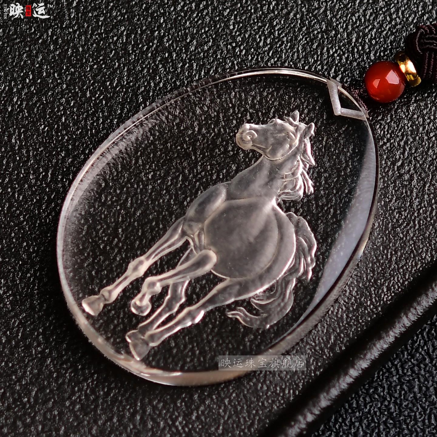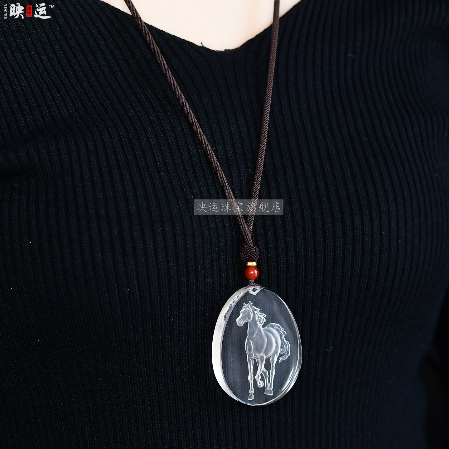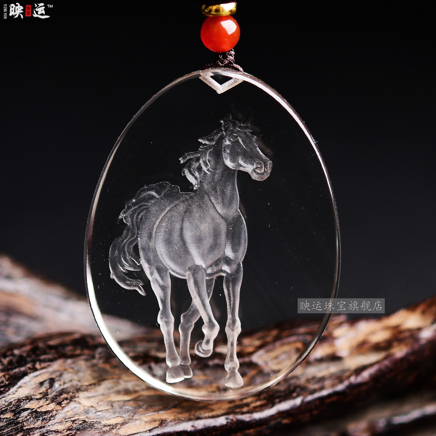 天然白水晶生肖属马吊坠马到成功无事牌马上有福挂坠男女项链饰品