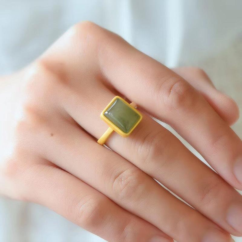 青玉镶嵌镀金经典古法金方形鎏金工艺开口可调节大小戒指女款