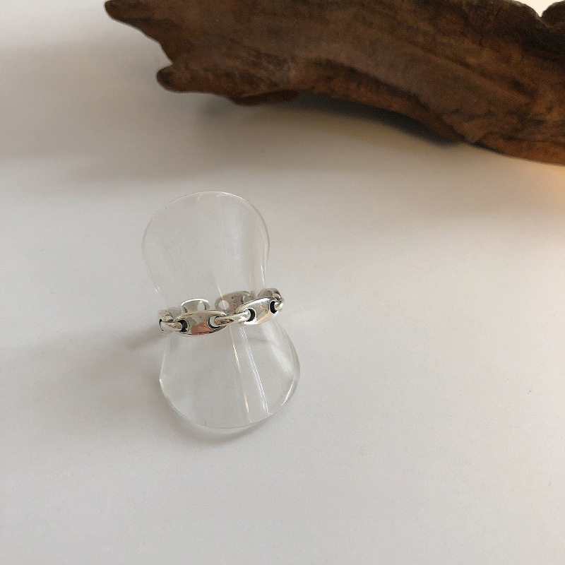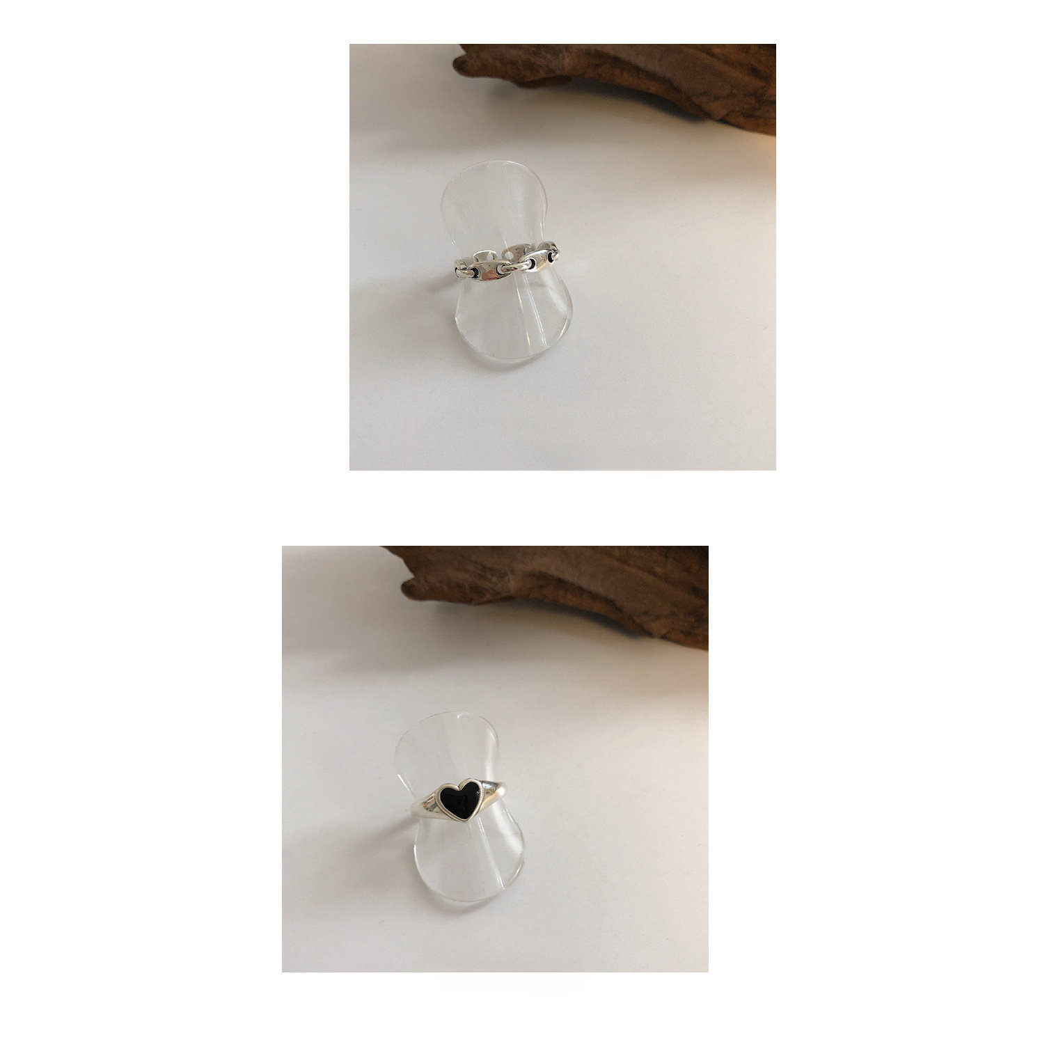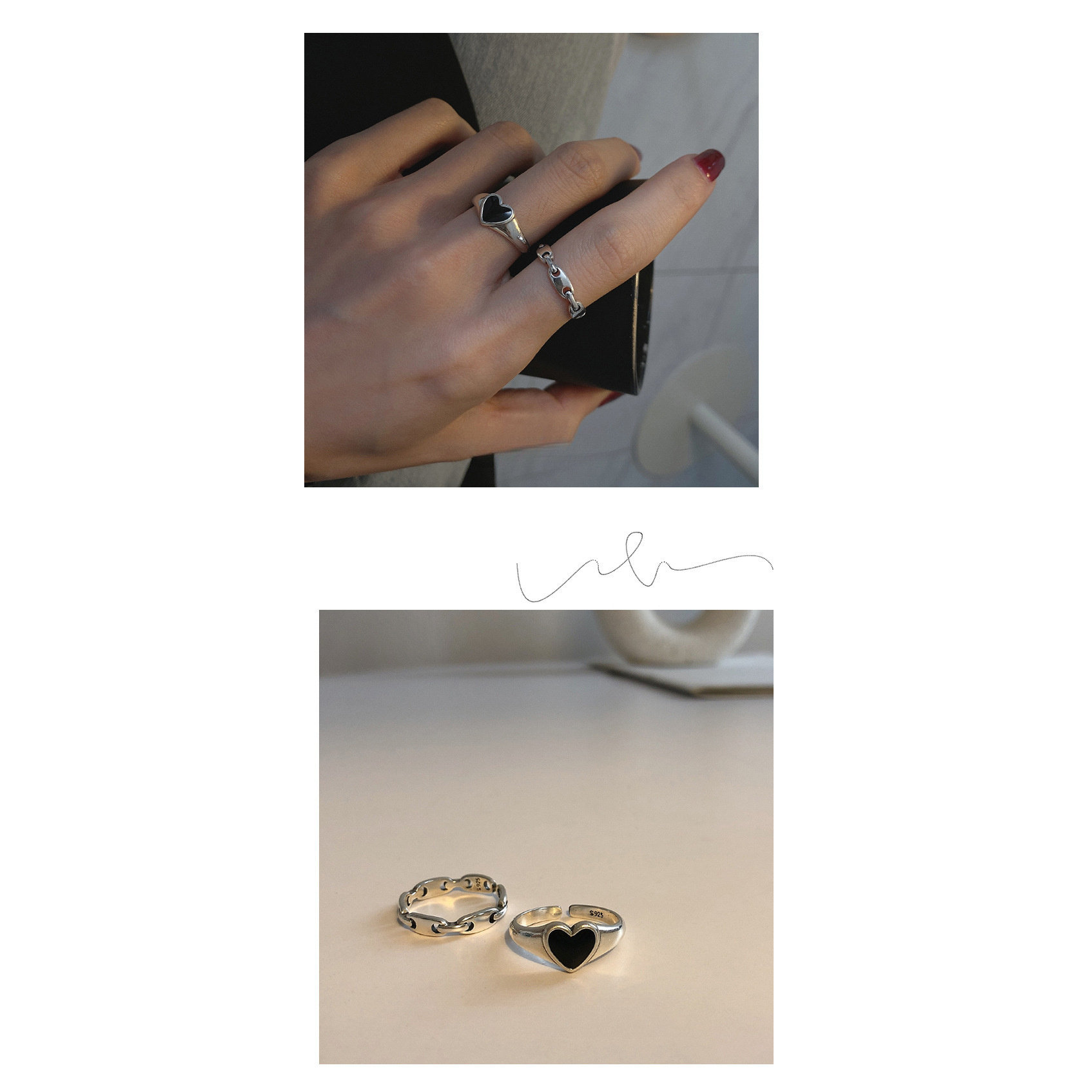 925纯银戒指女黑色爱心开口时尚个性ins潮简约百搭冷淡风食指戒