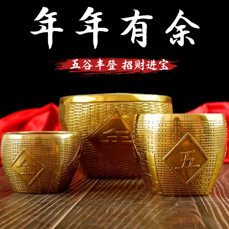 五谷丰登杂粮摆件镇宅招财粮仓金斗铜缸纯铜乔迁新居礼品年年有余