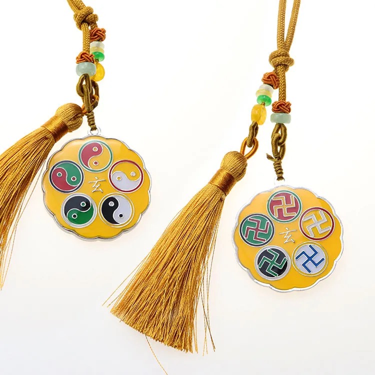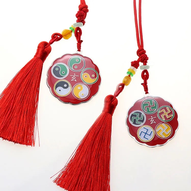 四厘米双面五行八卦太极万字符黄铜车挂摆件黄红蓝绿黑五色车坠件