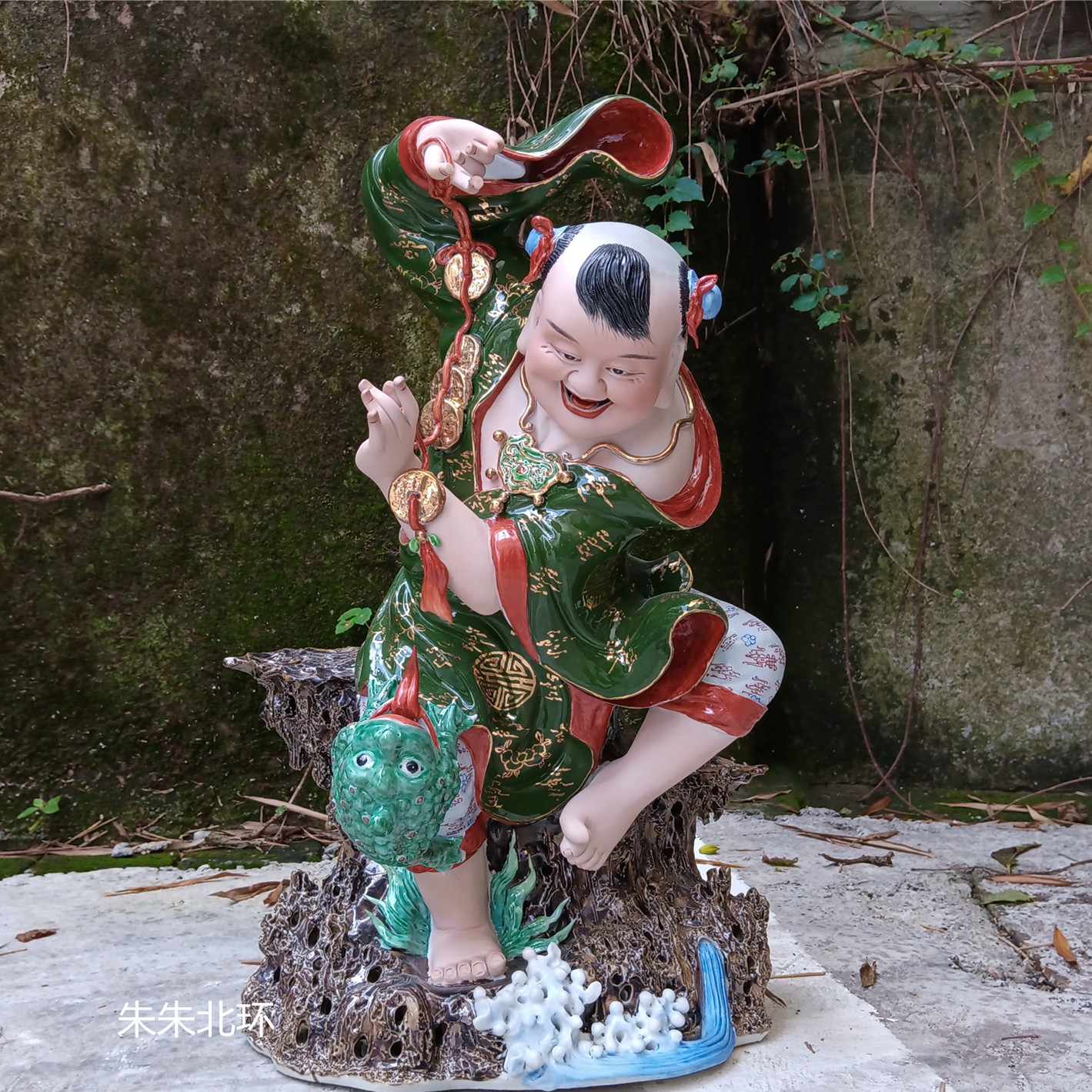 景德镇雕塑陶瓷招财金蟾蜍摆件设风水三足蛤蟆刘海戏金蝉开业礼品