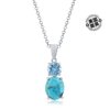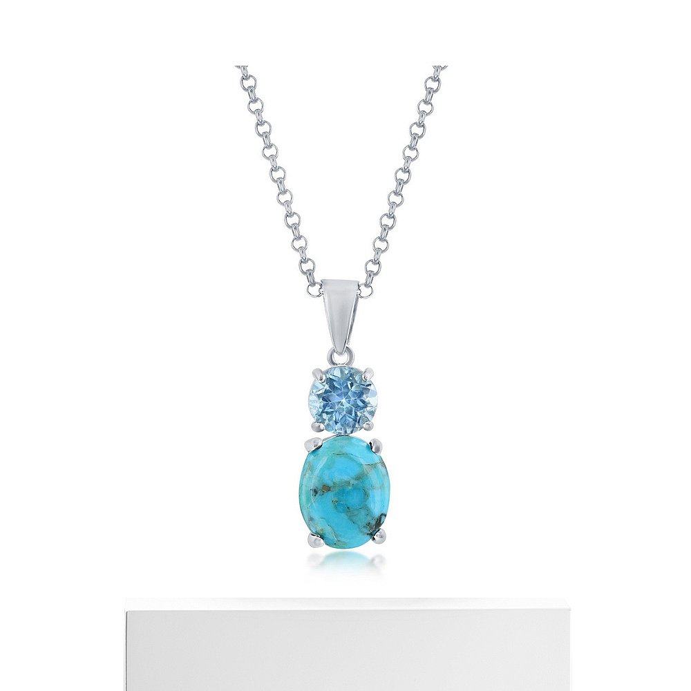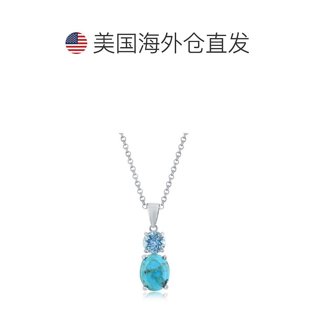 自营 simona纯银椭圆形绿松石和圆形宝石吊坠 - 蓝色托帕石 - 蓝