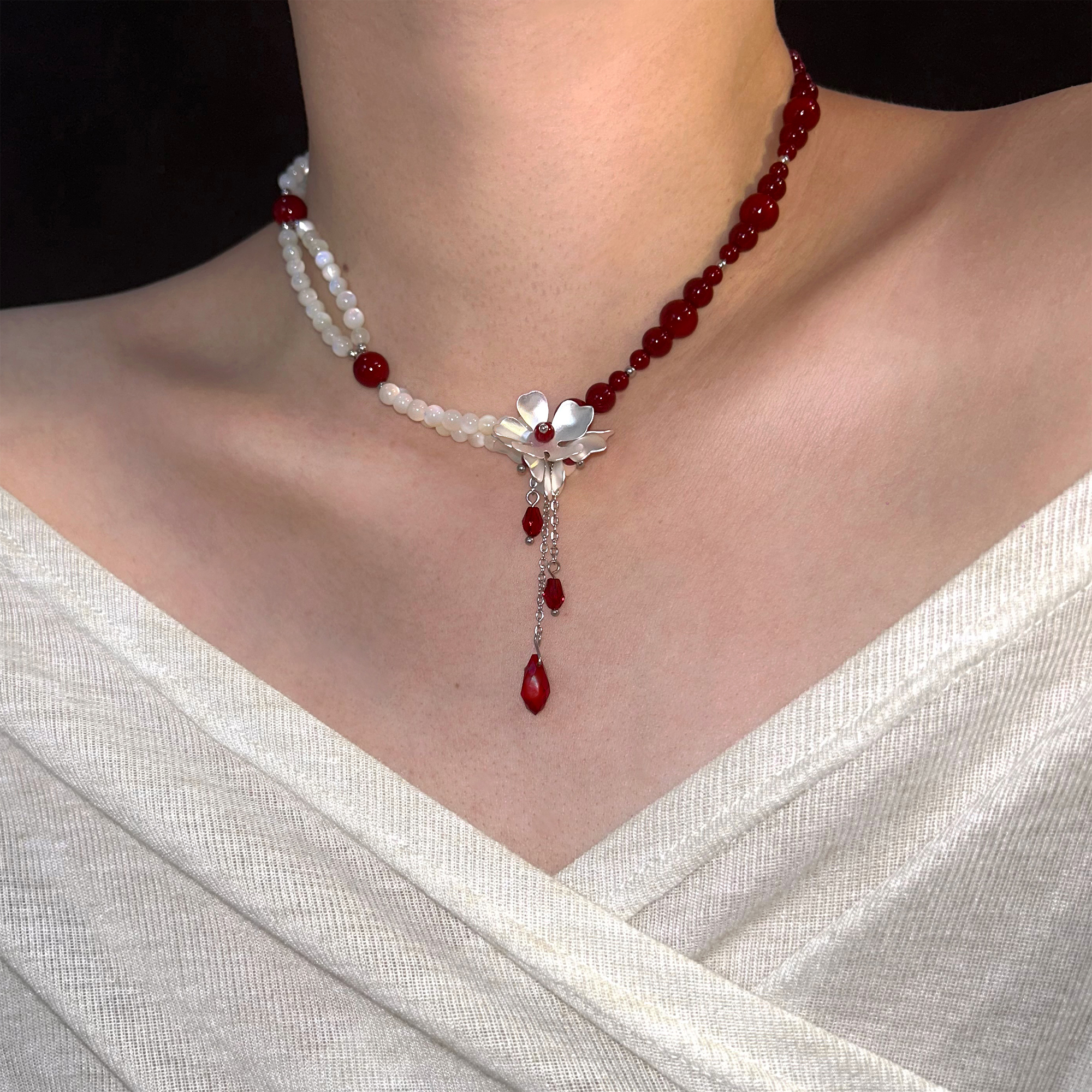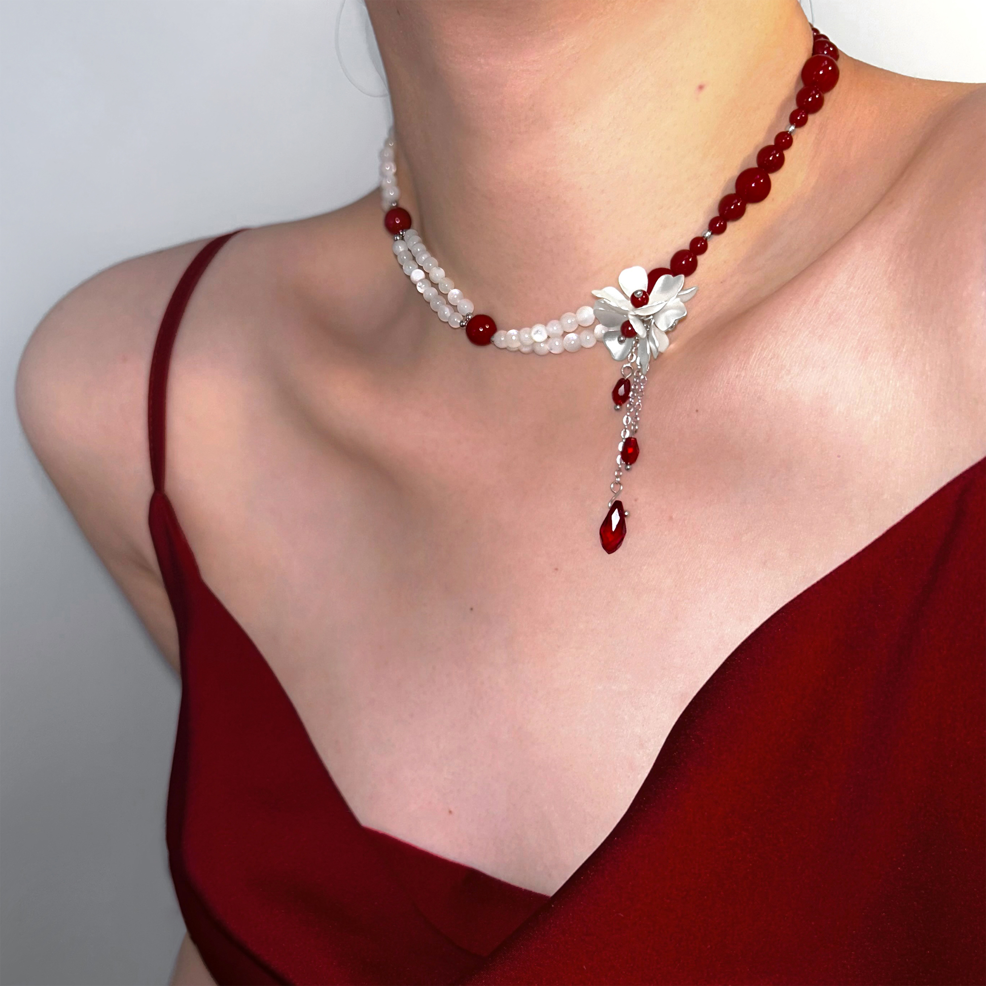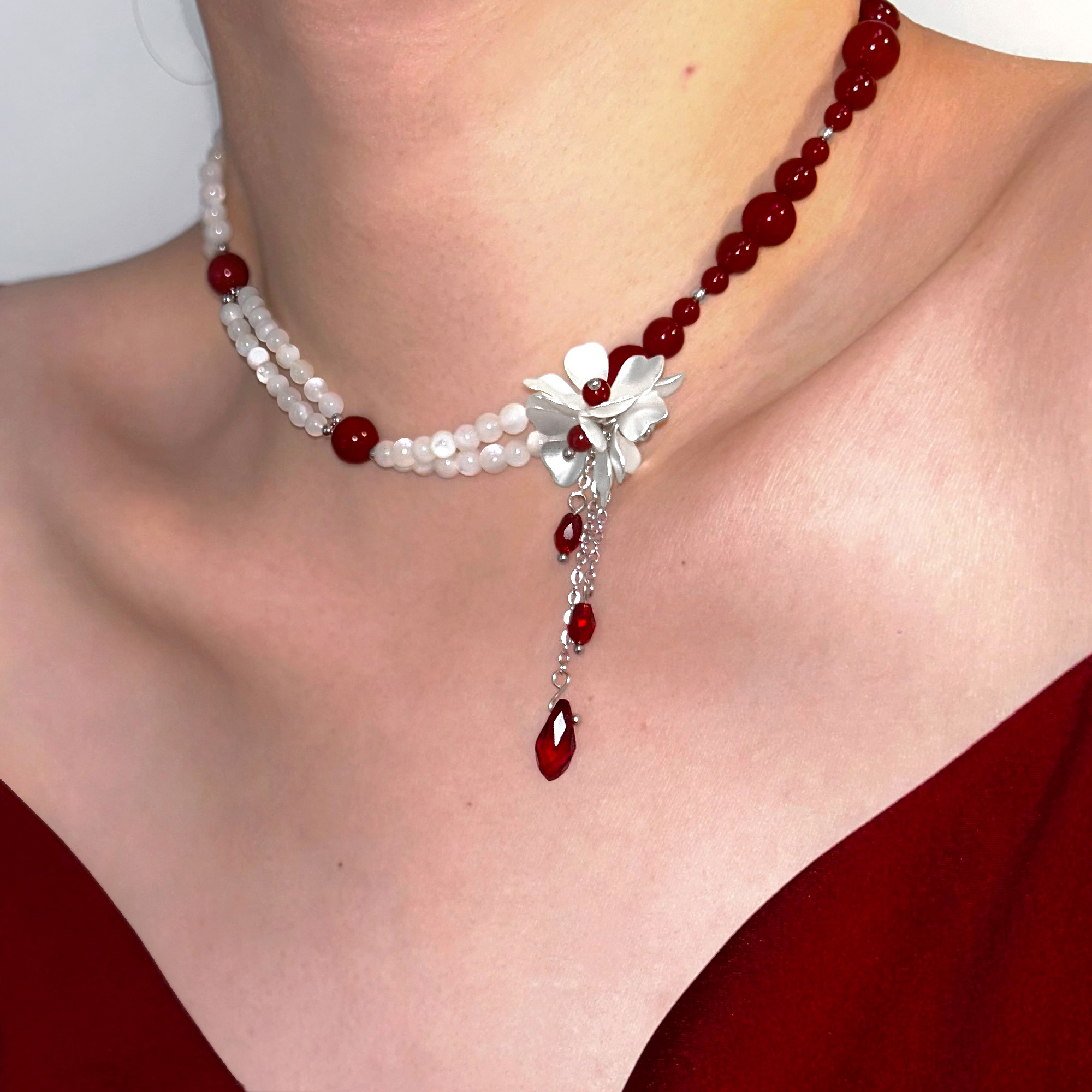 SU浮空岛「猩红贝母」小众高级感choker项链安可拉红色珍珠锁骨链