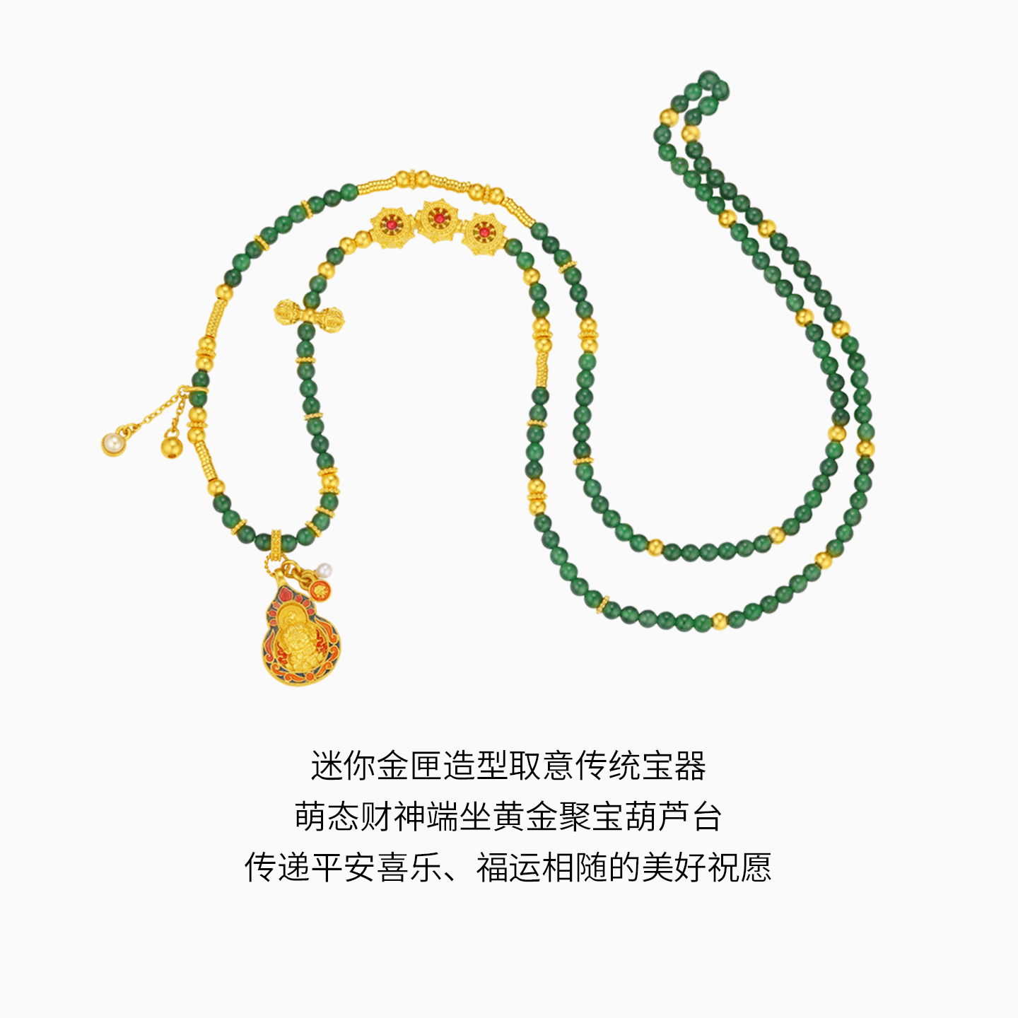 潮宏基臻金珍藏黄财神黄金翡翠珍珠项链足金套链颈饰正反双面 卟
