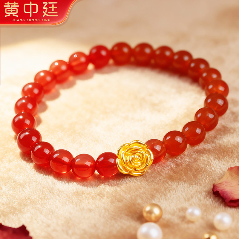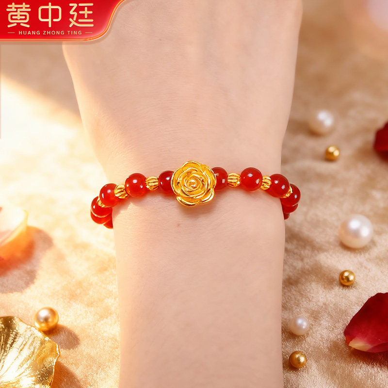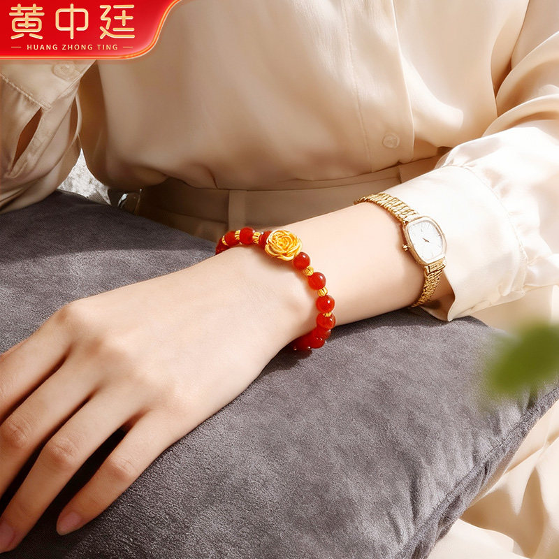玫瑰花女士足金999转运珠手镯黄金手链送老婆女友七夕情人节礼物