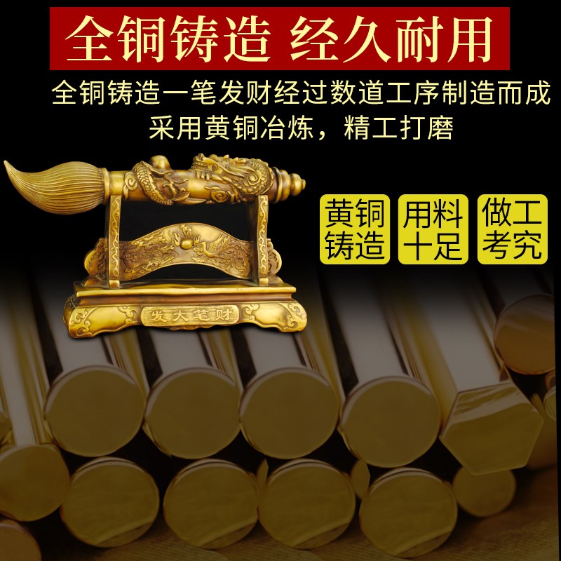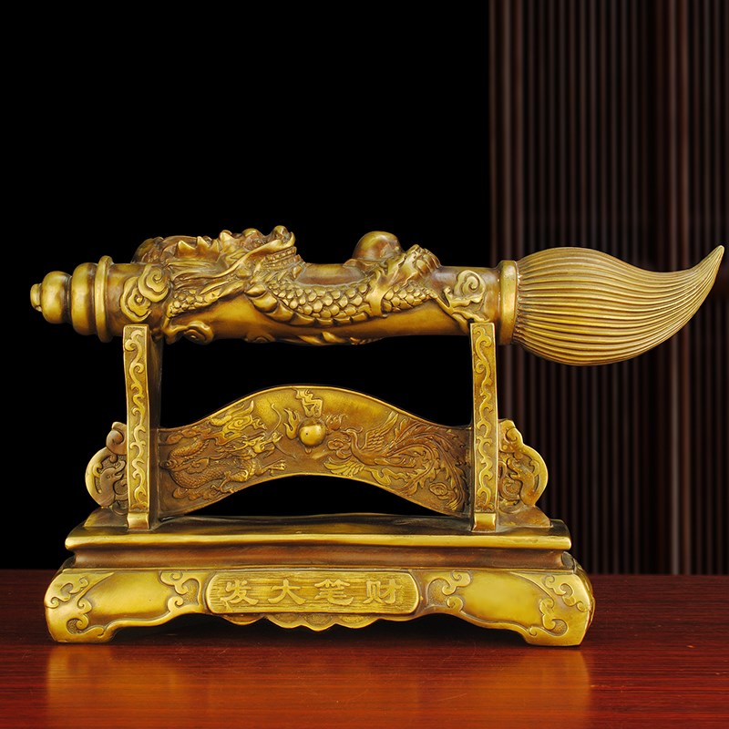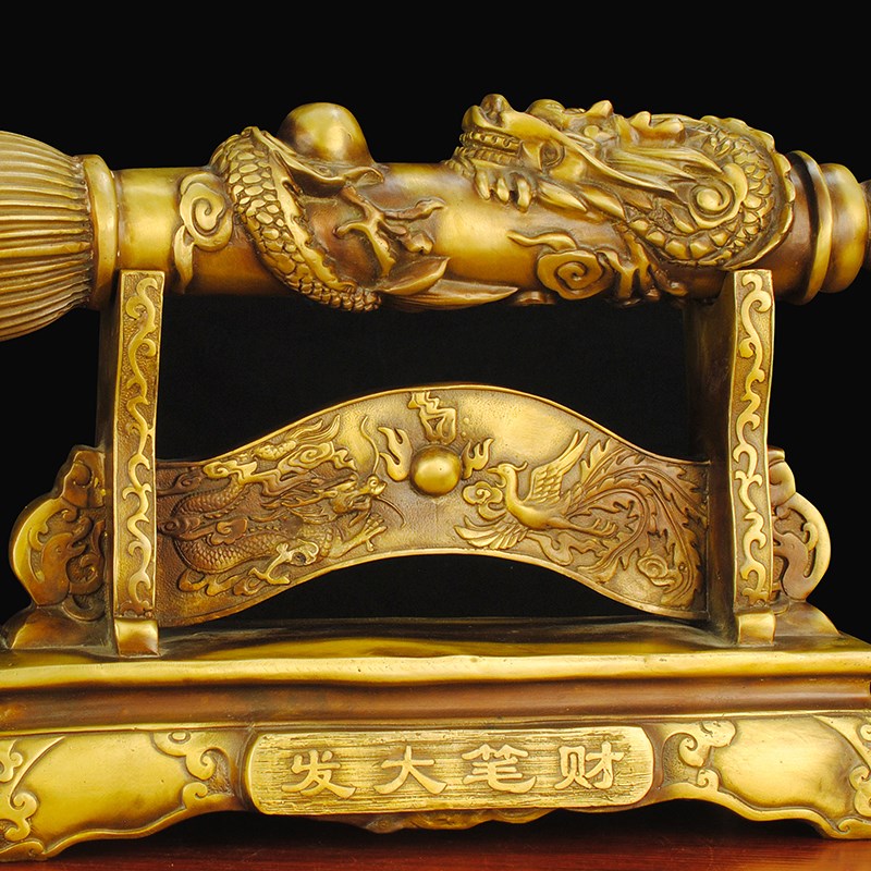毛笔纯铜一笔发财龙笔文昌笔摆件居家玄关M客厅办公室装饰工艺礼