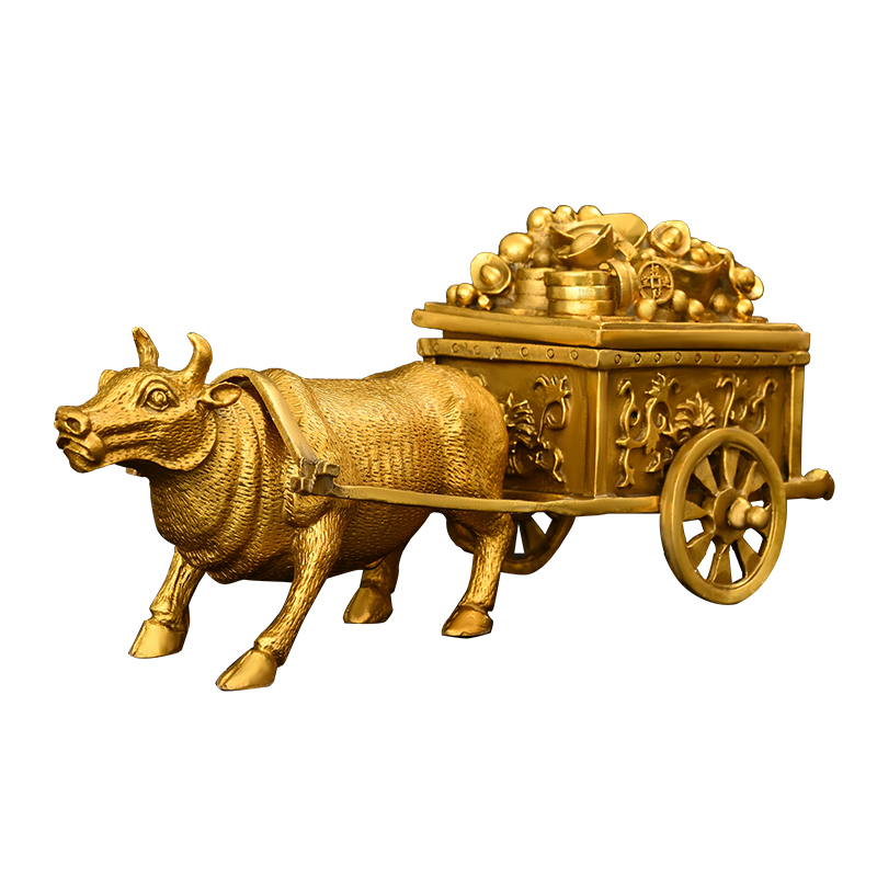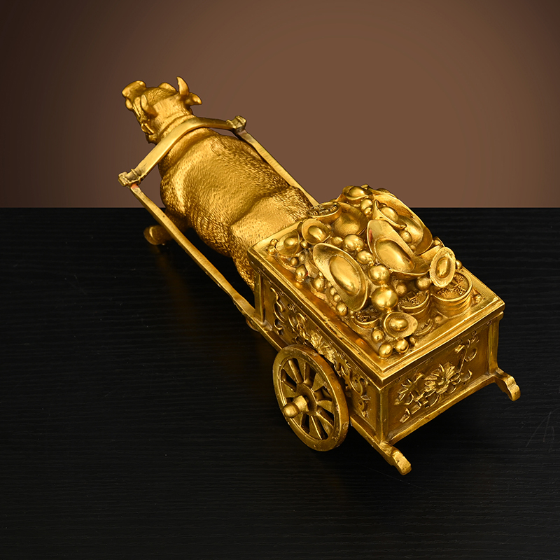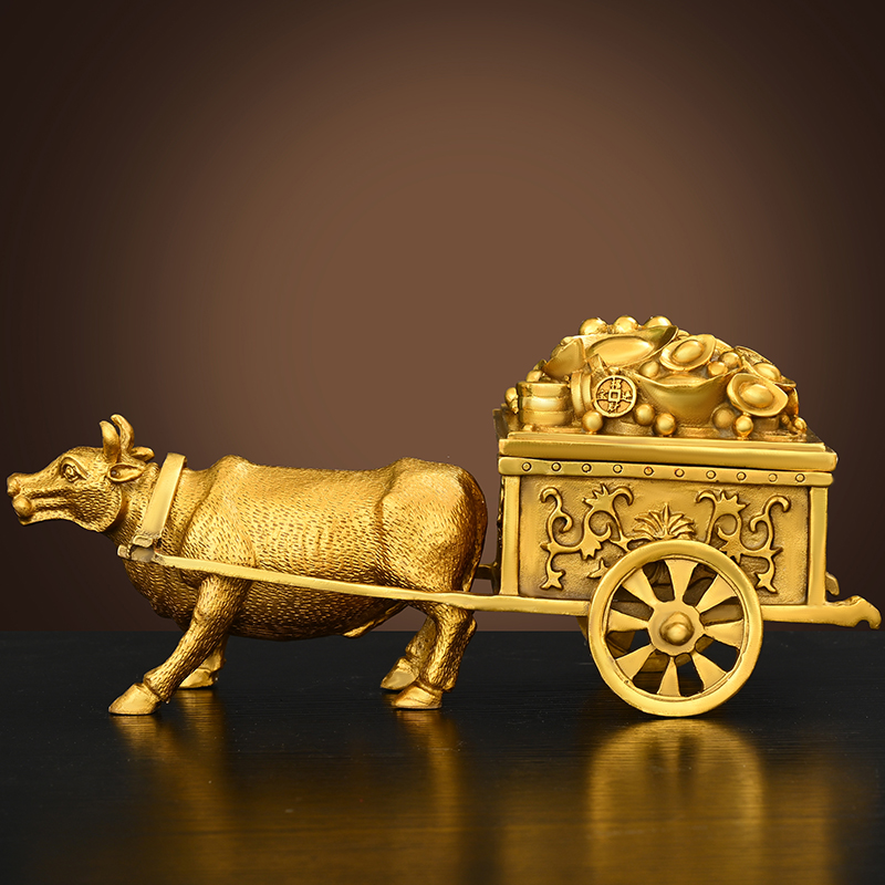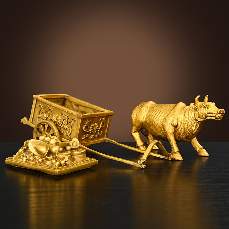 纯黄铜牛拉车摆件牛拉元宝车生肖牛家居办公室装饰工艺品桌面礼品