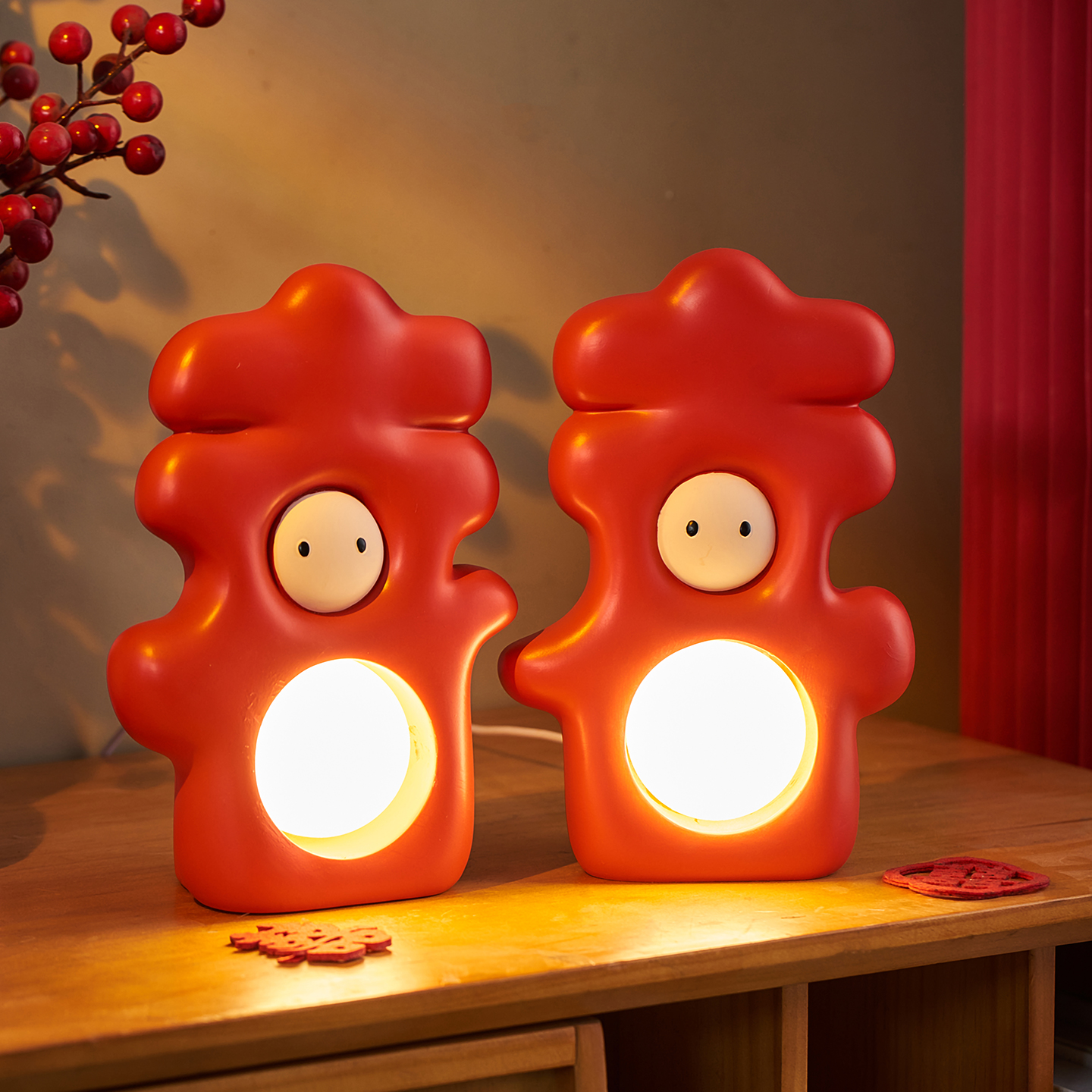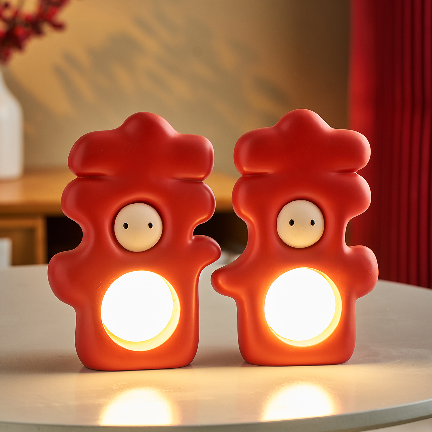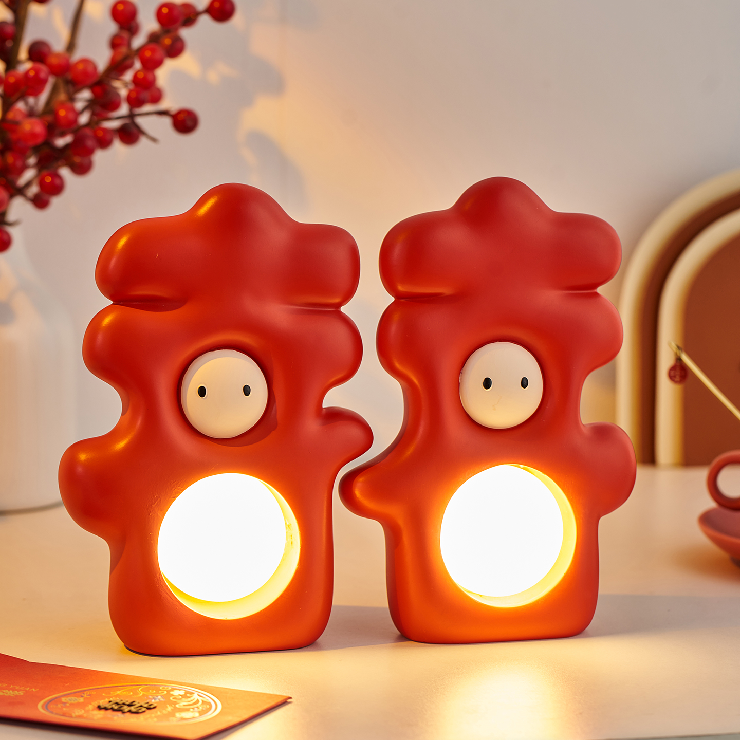 情侣摆件好事成双新中式喜庆树脂双件暖光小夜灯婚房装饰