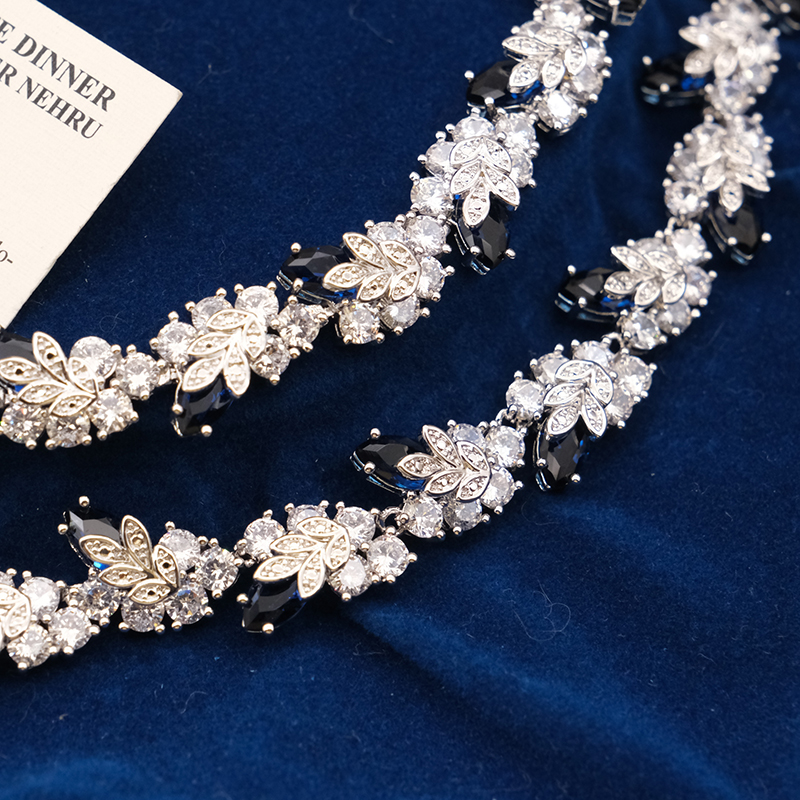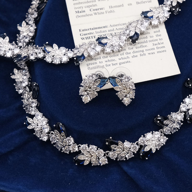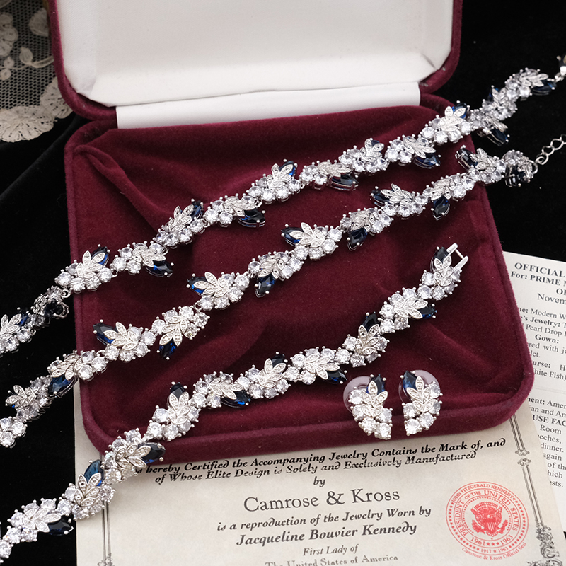 Vintage中古首饰JBK杰奎琳蓝色水晶宴会送礼物手链耳钉项链套装