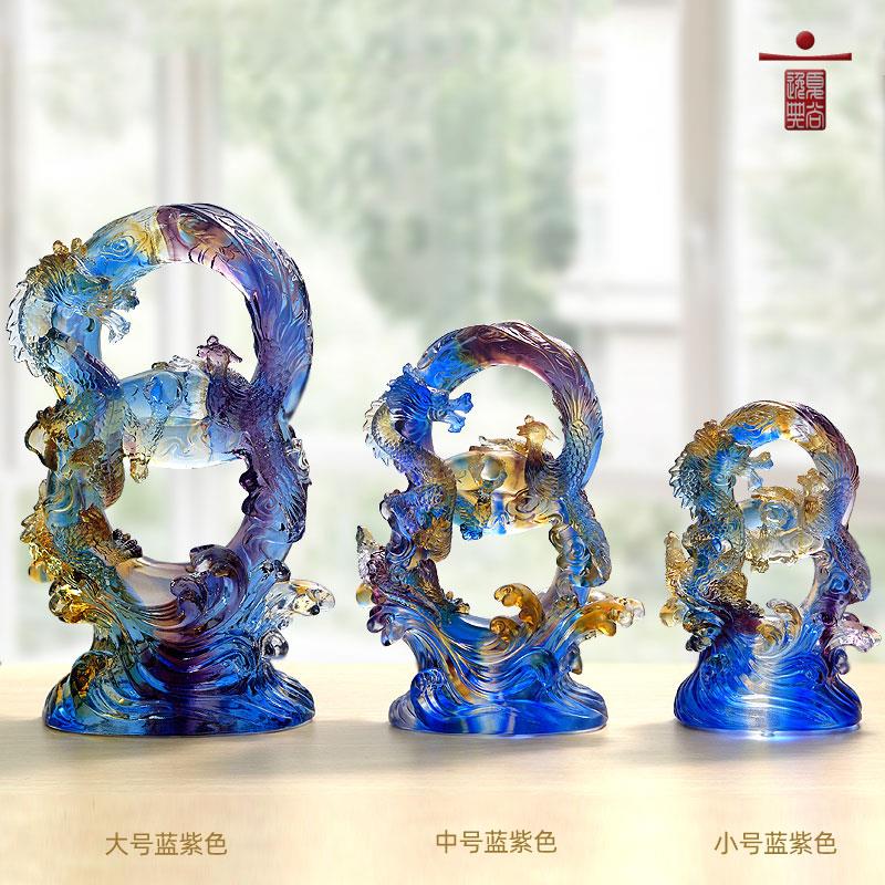 客厅装饰琉璃摆件龙凤呈祥轻奢高端艺术水晶工艺品结婚礼物送新人