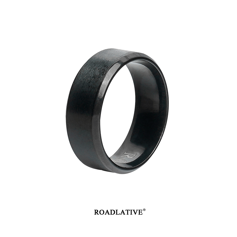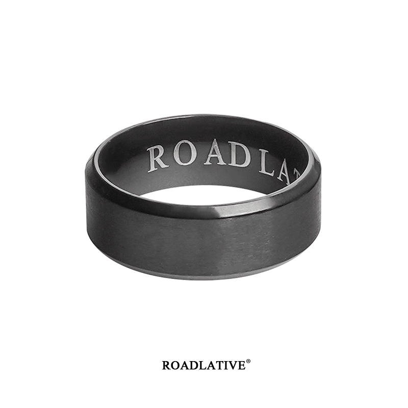 ROADLATIVE原创国潮磨砂简约时尚嘻哈黑色钛钢戒指环男cleanfit