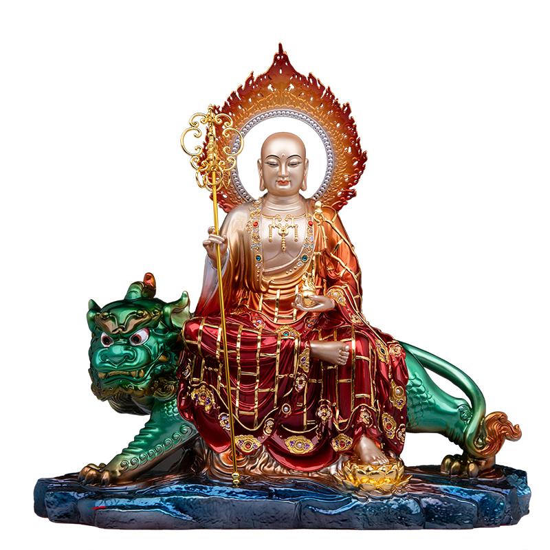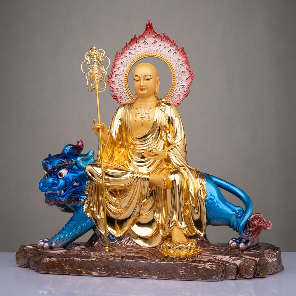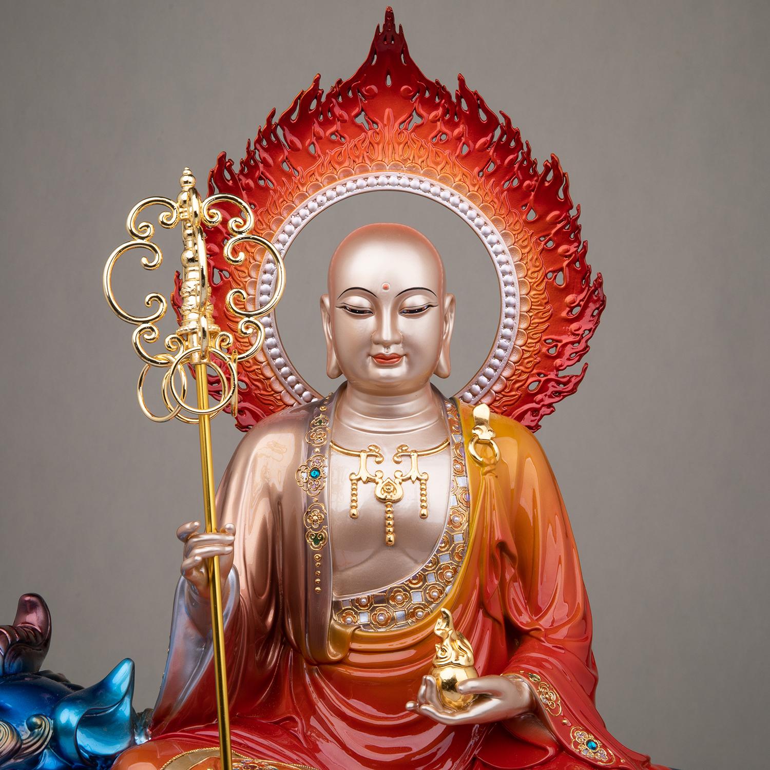 康盛全铜彩绘带骑谛听地藏王菩萨佛像家用供奉袈裟地藏纯黄铜像