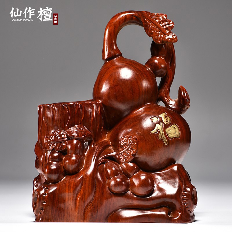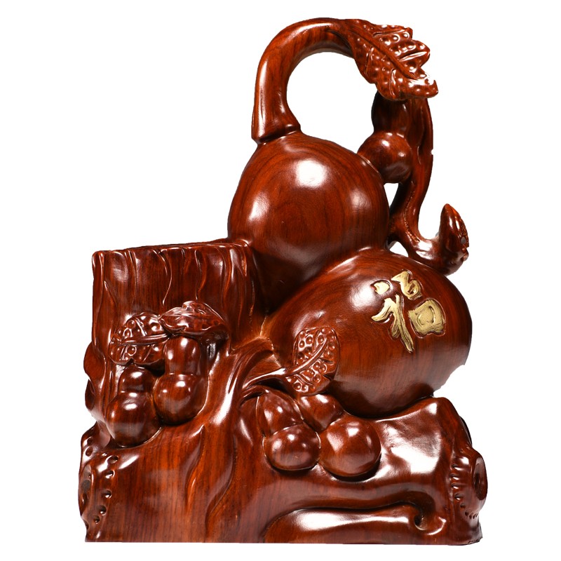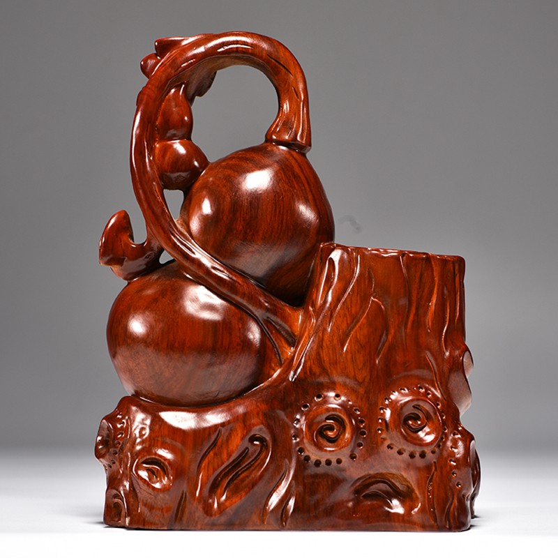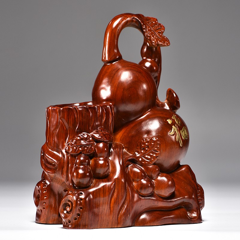 花梨木雕葫芦笔筒摆件实木质文房办公室书房用品家居客厅工艺礼品