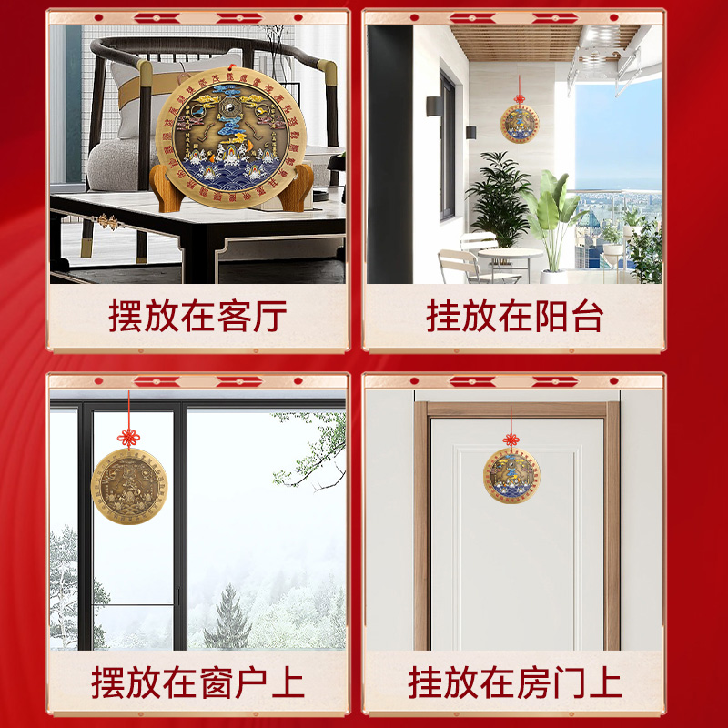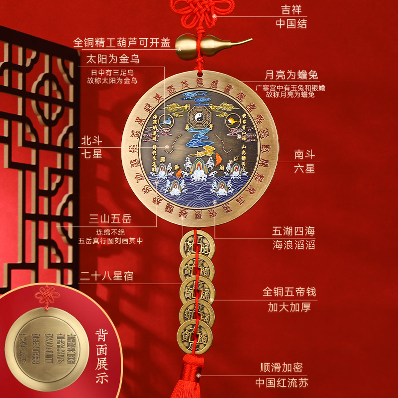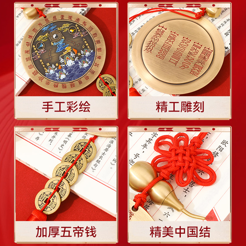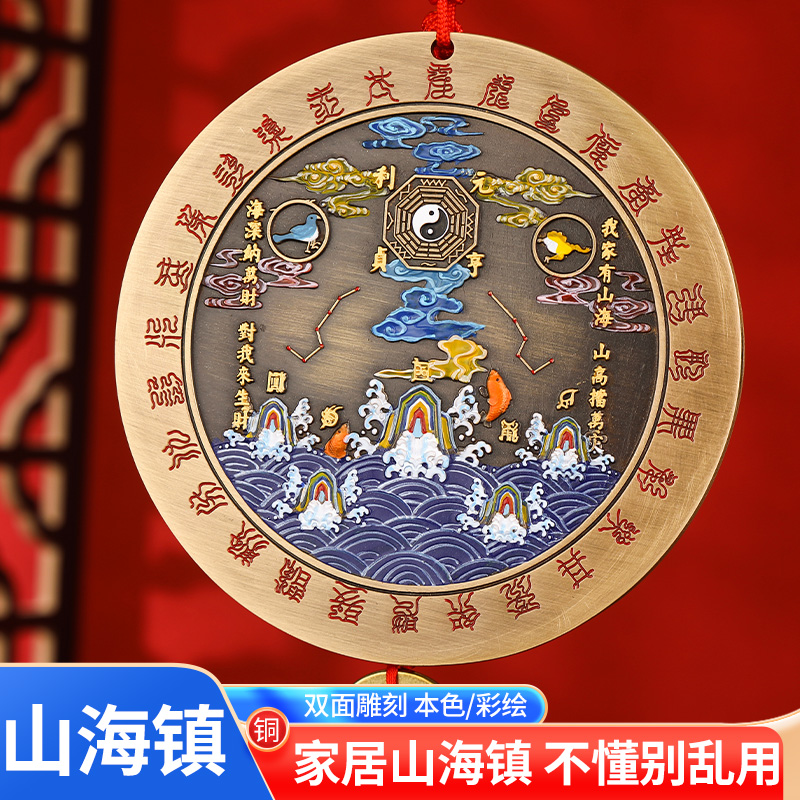 大号纯铜山海镇挂件室外摆件麒麟彩绘八卦图玄关装饰品家用凹凸镜