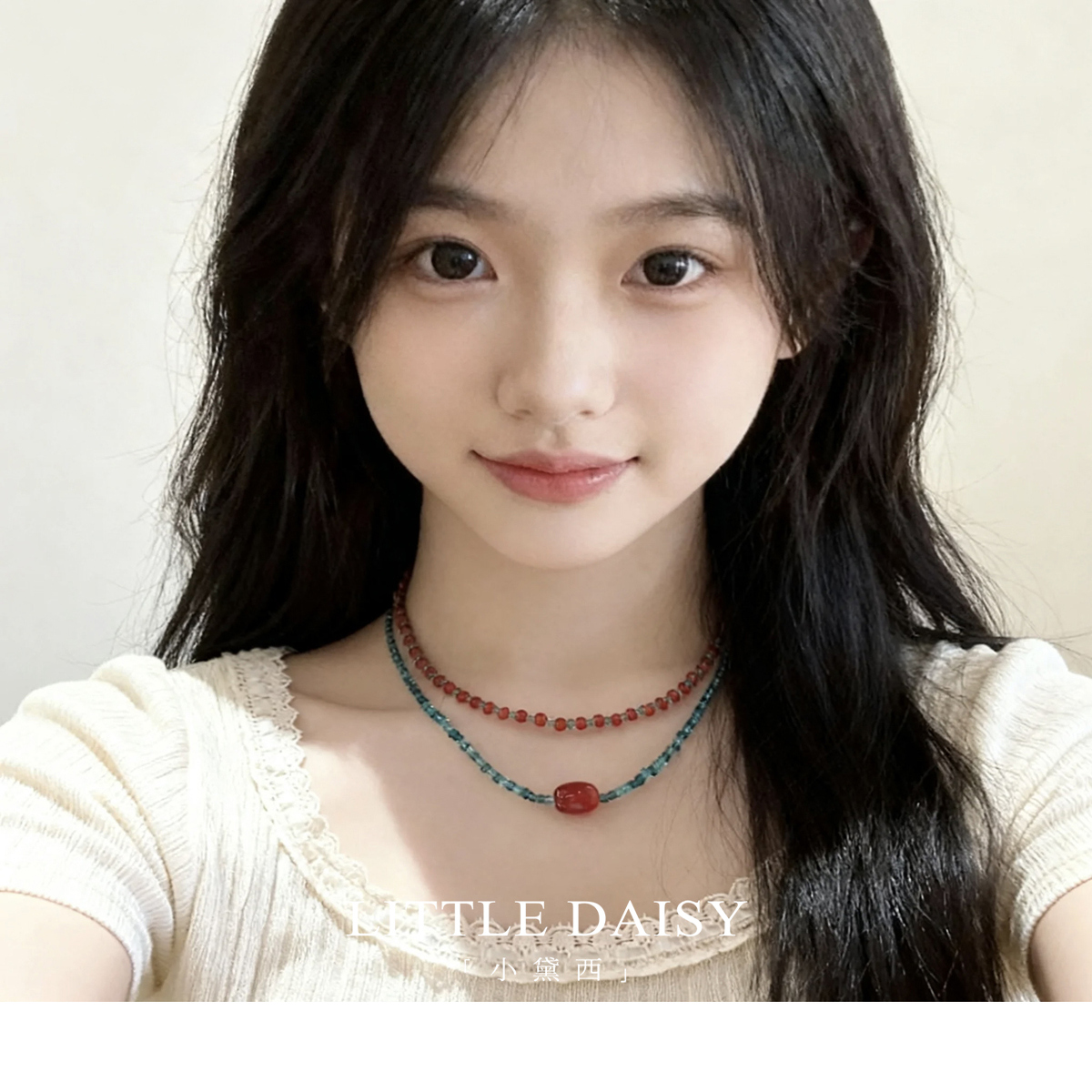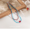 「小黛西」复古新中式撞色红蓝串珠项链复古叠搭桶珠吊坠叠戴项链
