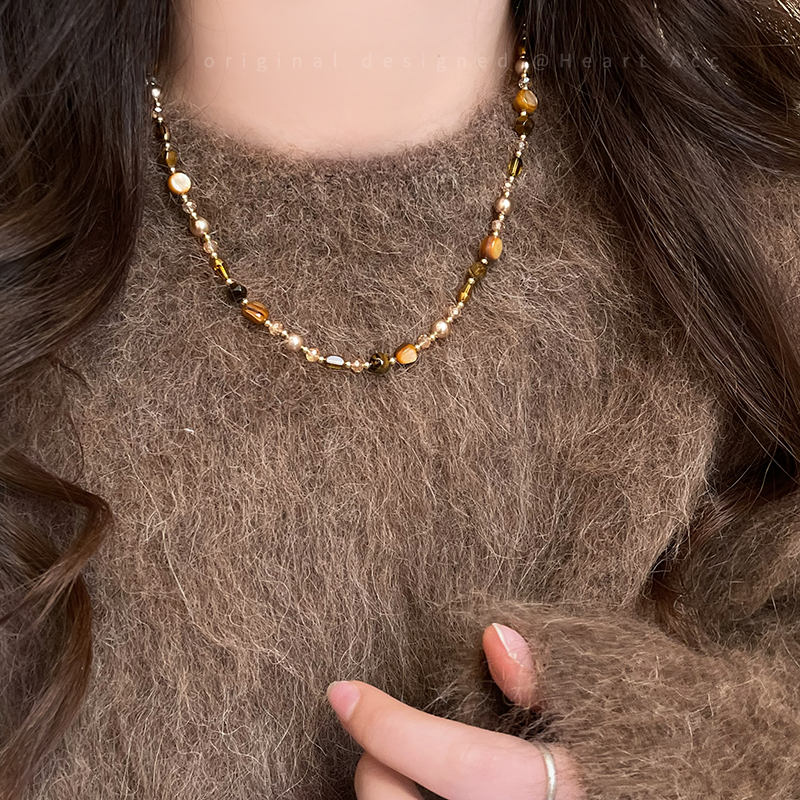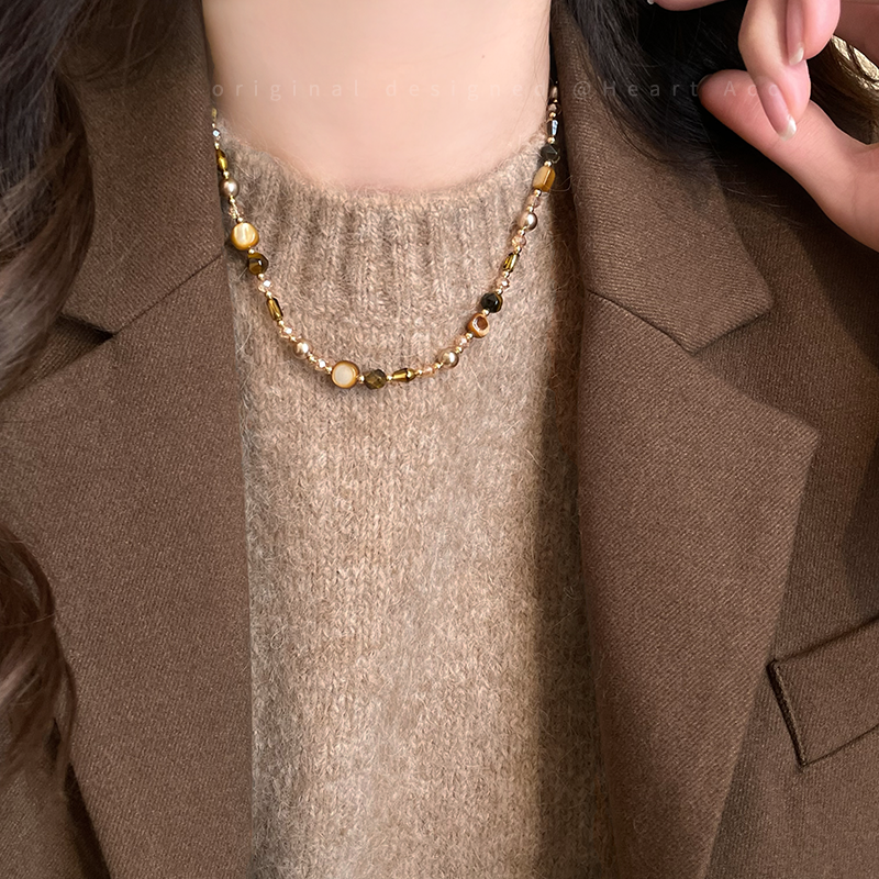 天然美拉德虎眼石串珠项链女咖色高级感百搭锁骨链精致百搭毛衣链