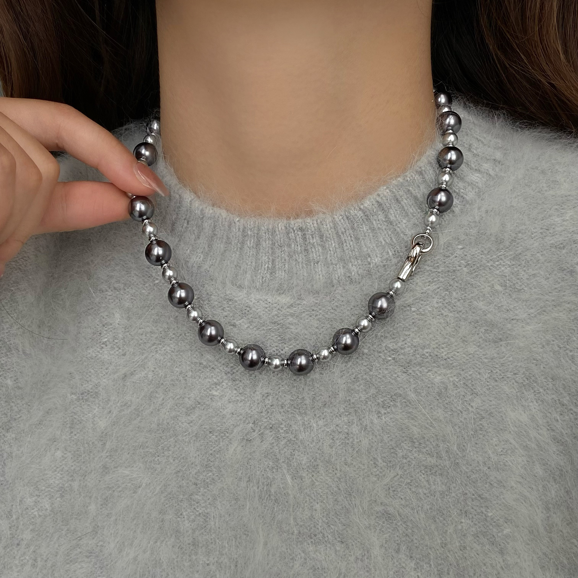 高端灰色毛衣链秋冬轻奢高级感大气百搭项链女款2025新款小众配饰