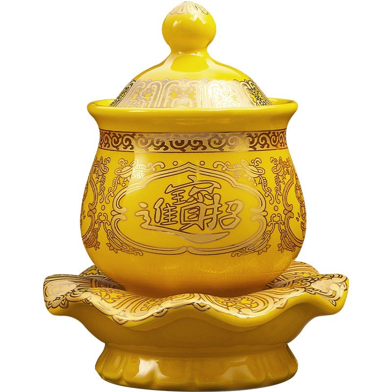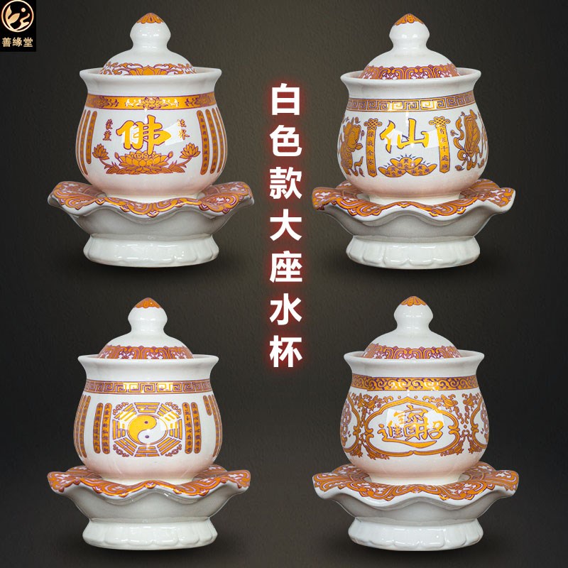 善缘堂 供水杯供佛陶瓷道u家供杯大悲水财神仙家家用摆件红色黄色