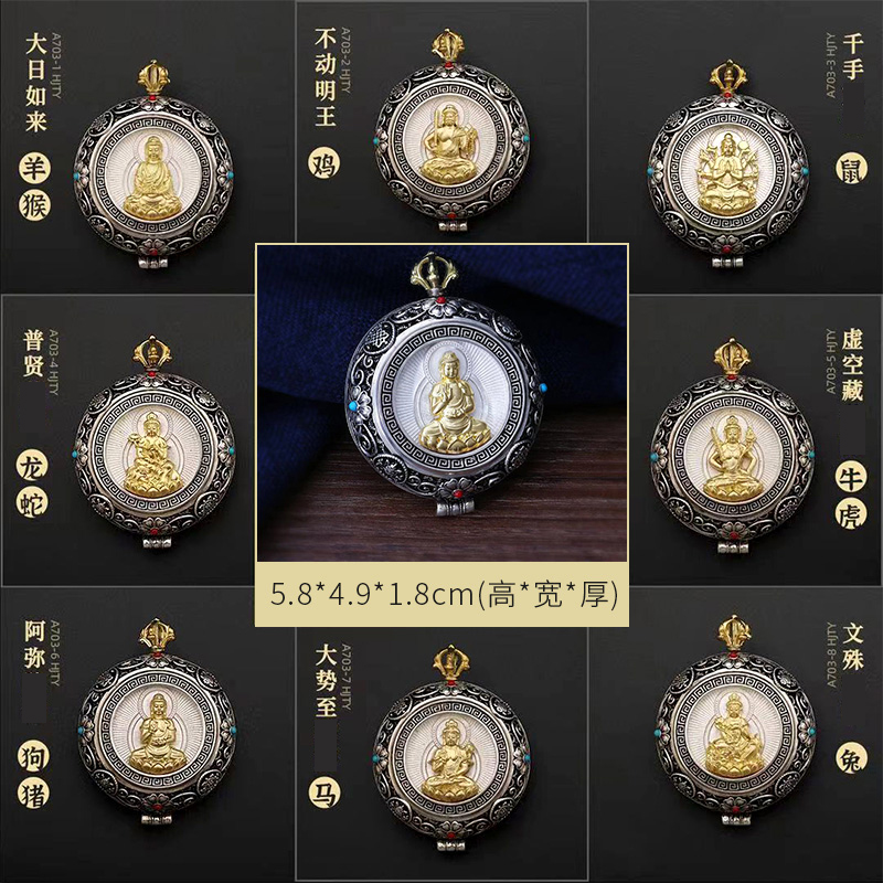 本命佛嘎乌盒吊坠 S999银属相牛虎兔文殊菩萨观音菩萨随身牌项链