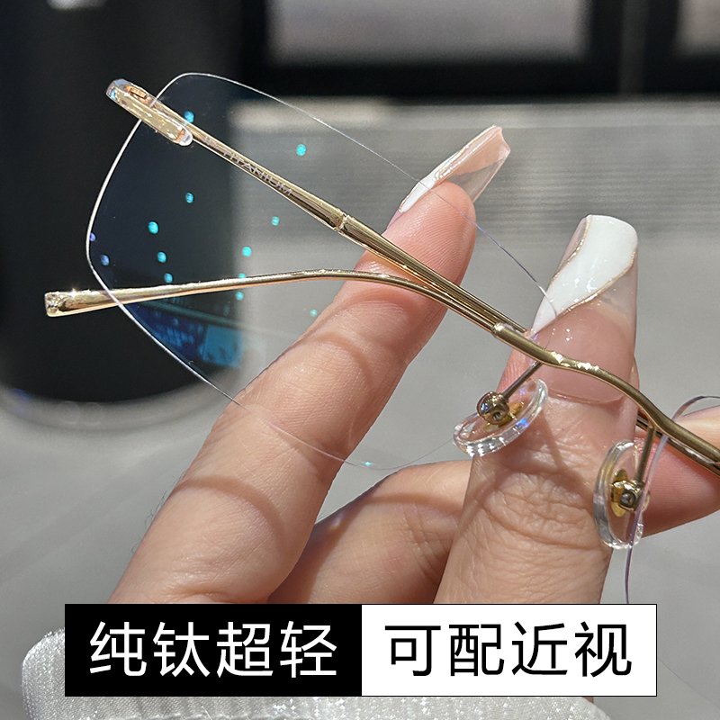 超轻纯钛金丝眼镜近视男款无边框变色防雾可配有度数素颜眼睛架女