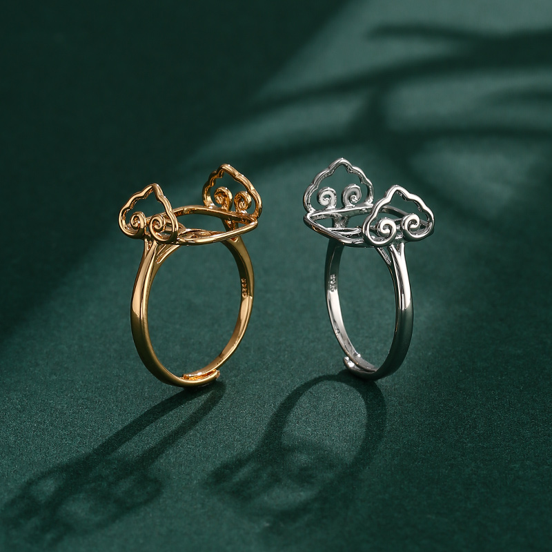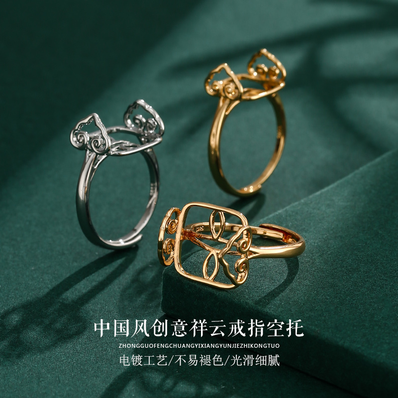 中国风祥云戒指空托男女小众设计镶嵌翡翠和田玉复古简约戒托空托