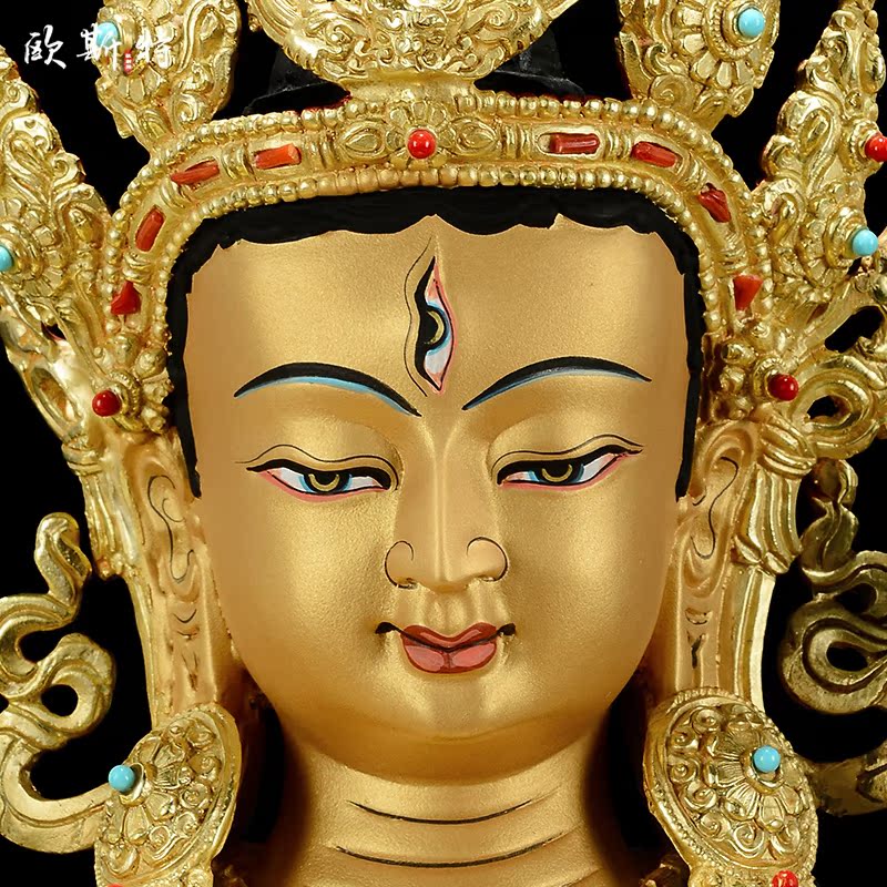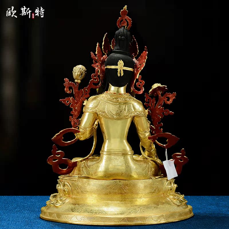 欧斯特全鎏金《白度母》精工铜雕宝石镶嵌《度母》家用桌面铜像