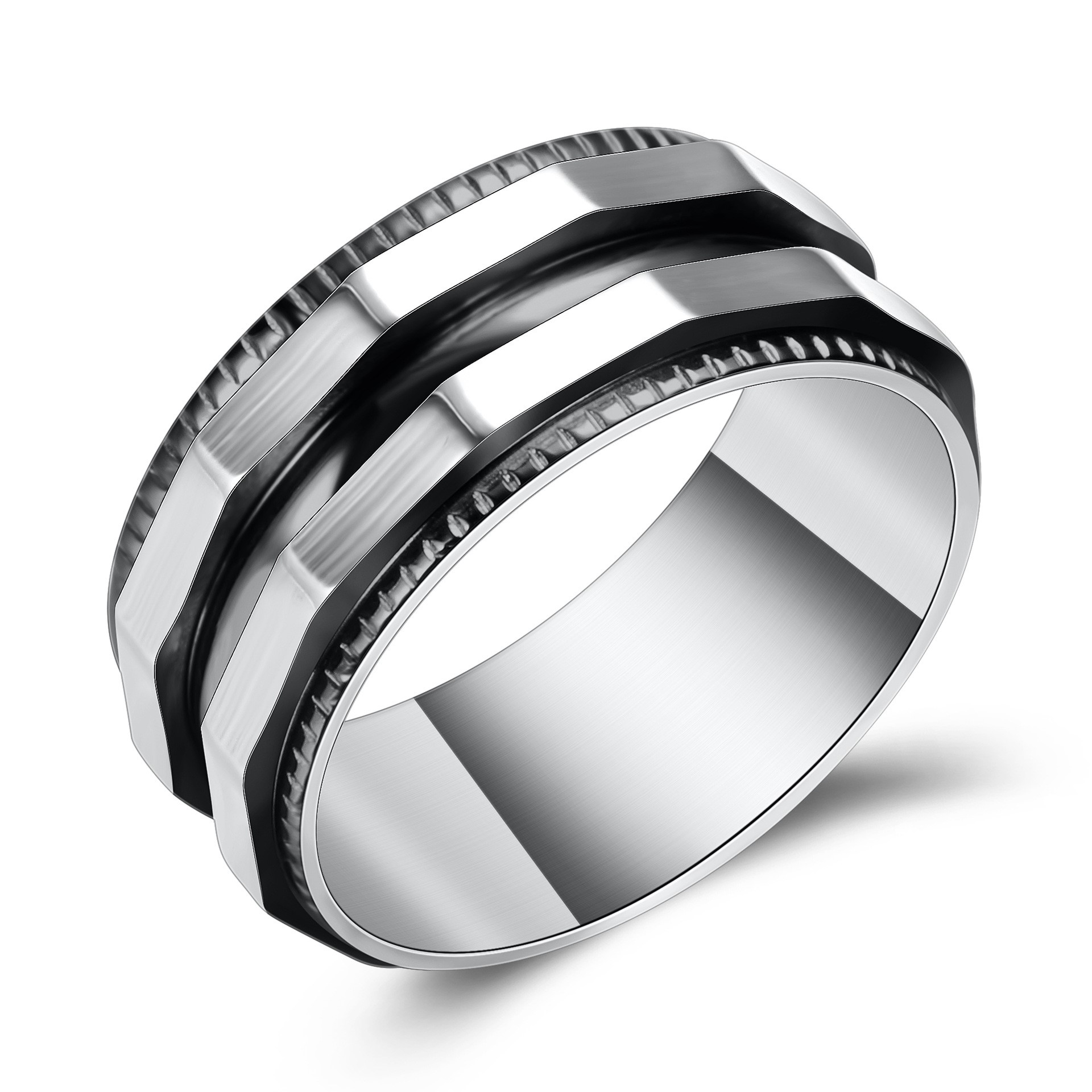 新款欧美潮流个性不规则8mm刺边不锈钢钛钢戒指百搭不锈钢戒指男