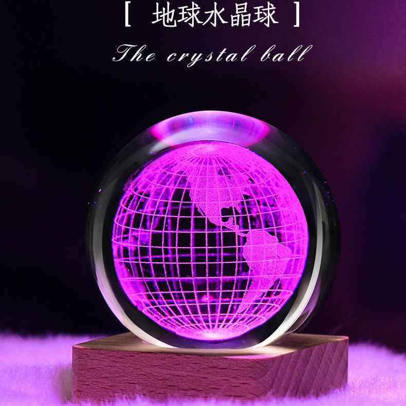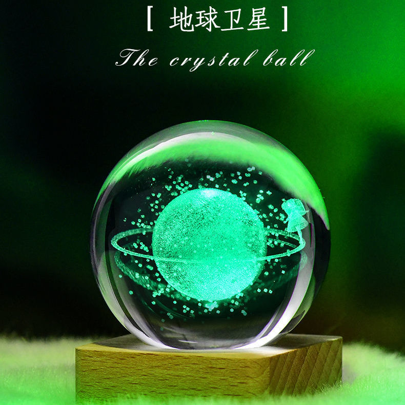 3D立体梦幻银河系水晶球蓝色发光夜灯月球太阳系玻璃球摆件毕业季