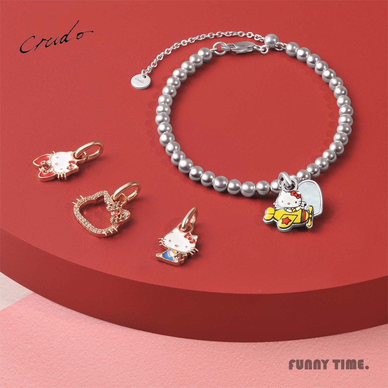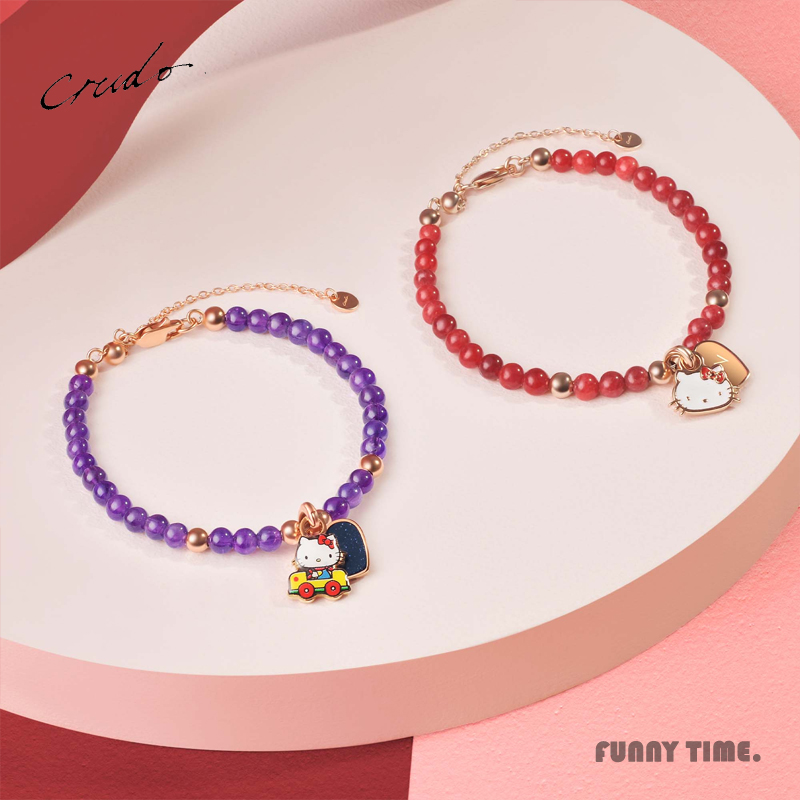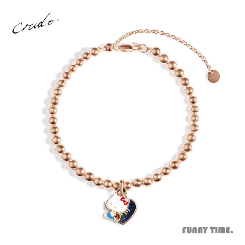 香港代购Crudo Leather HelloKitty水晶纯银情侣手绳 KT手链礼物