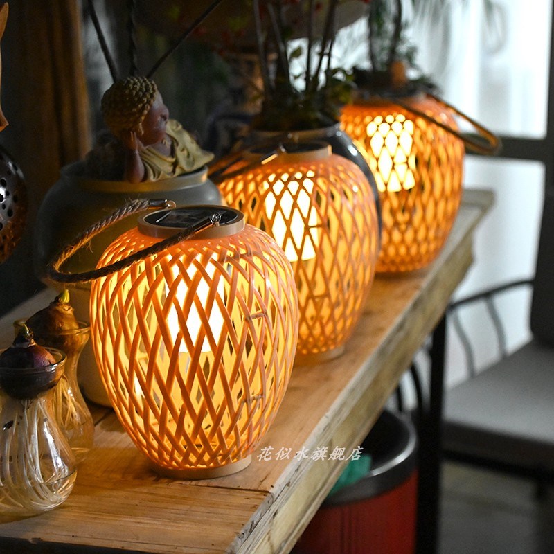 创意仿竹编太阳能灯笼挂件装饰吊件镂空摆件墙挂壁挂挂灯花园庭院