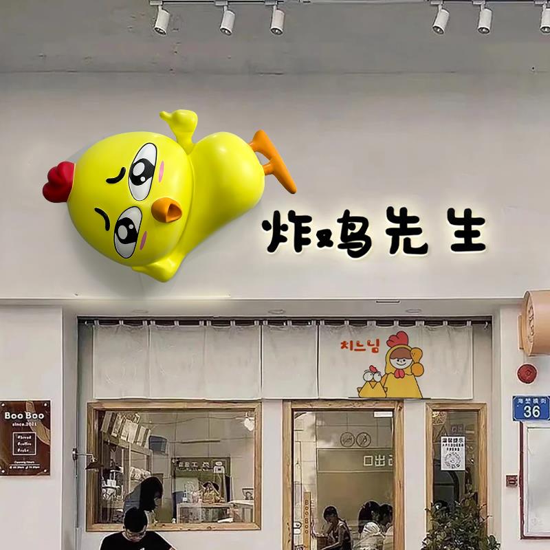 玻璃钢卡通小鸡雕塑农场炒鸡店面大摆件户外创意门头网红装饰定制