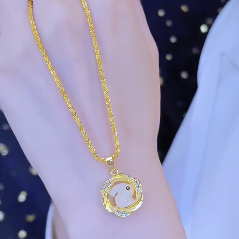 网红时尚满天星玉兔项链女轻奢气质高级感团圆兔锁骨链本命年礼物