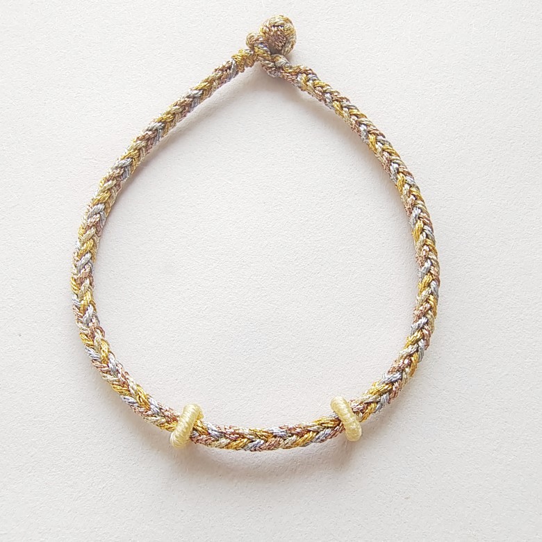 可穿珠玫瑰金线手链硬金路路通情侣闺蜜14K包金扣金属色手绳脚绳