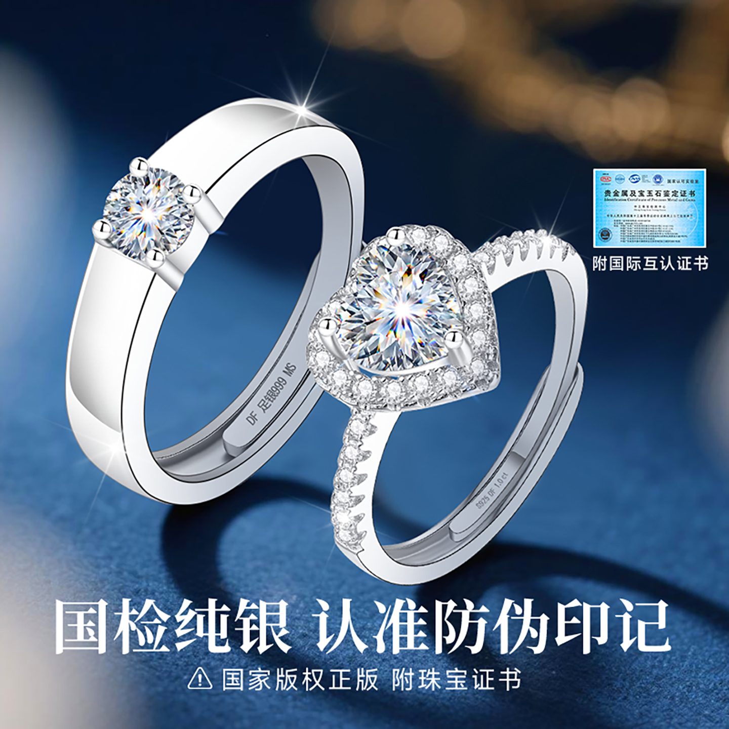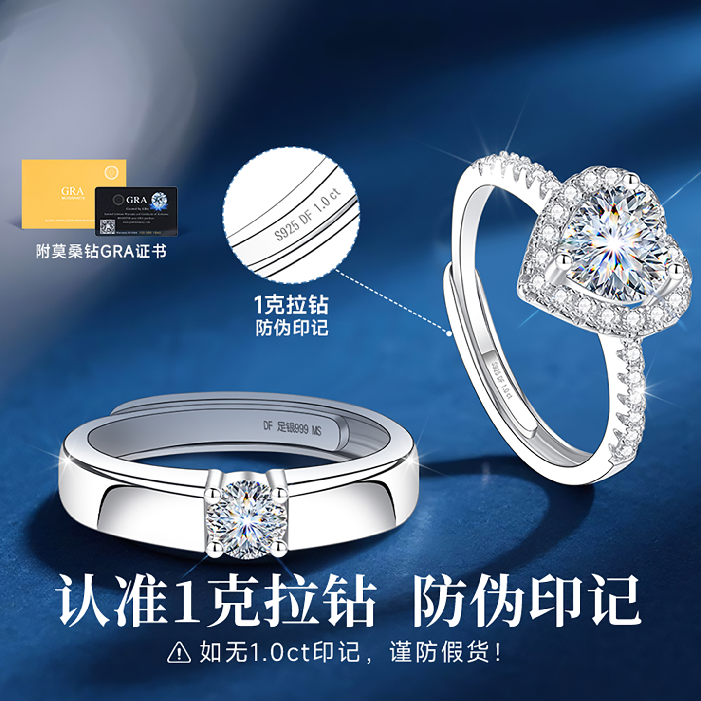 银戒指情侣对戒纯银一对女男情侣款莫桑石钻石莫桑钻钻戒求婚婚戒