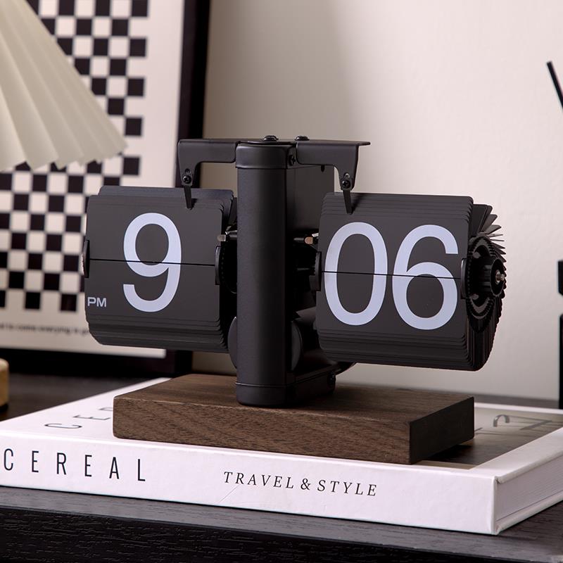 创意自动翻页时钟复古客厅摆件座钟机械数字钟表摆台装饰乔迁礼物