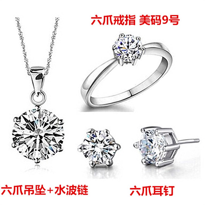 简约六爪锆石套装 耳钉项链戒指三件F套小清新首饰套装 外贸铜套