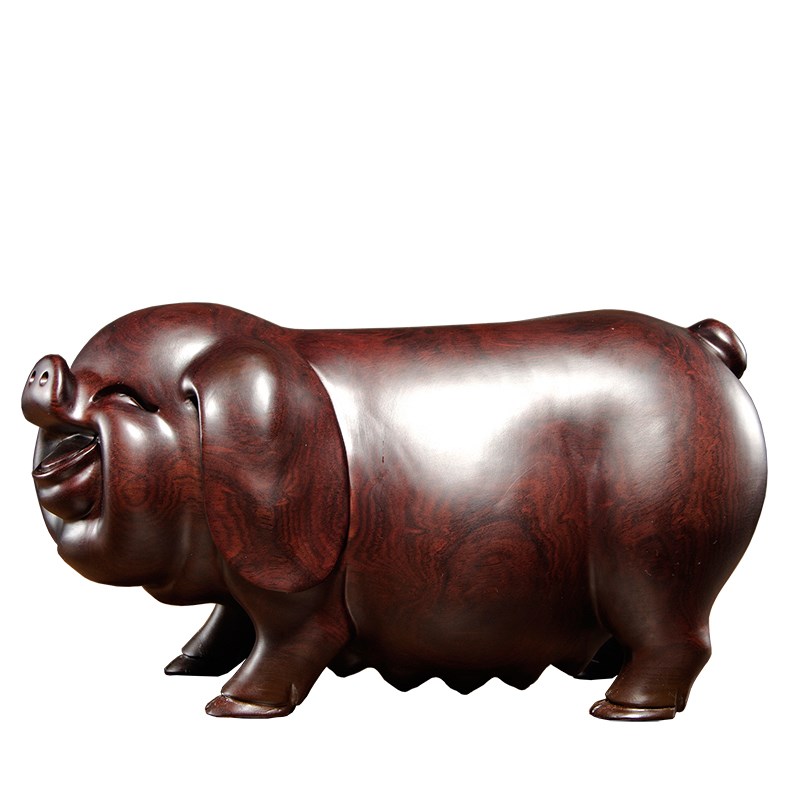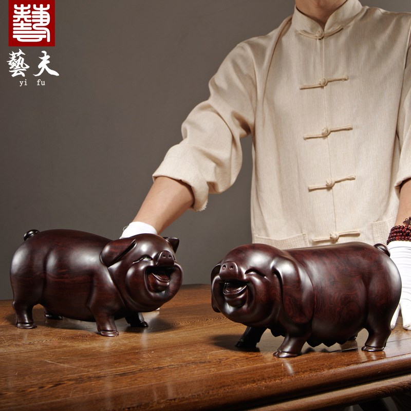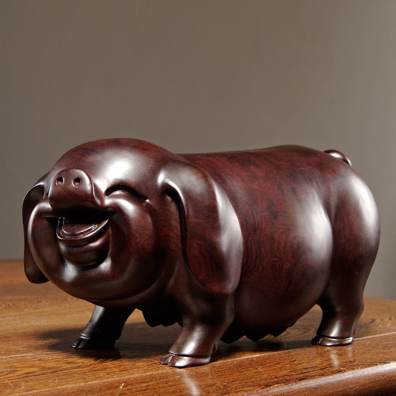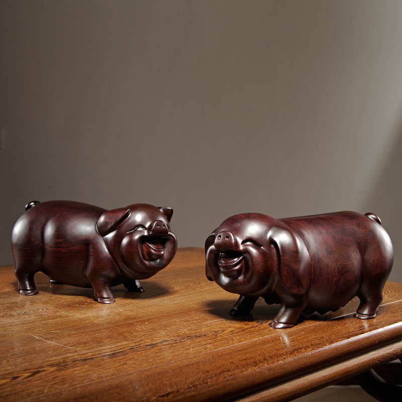 黑檀实木质雕刻一对猪摆件十二生肖动物猪家居客厅装饰红木工艺品