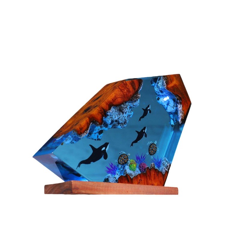 欧美热卖虎鲸和海龟树s脂灯环氧树脂台灯家居装饰生日装饰礼物
