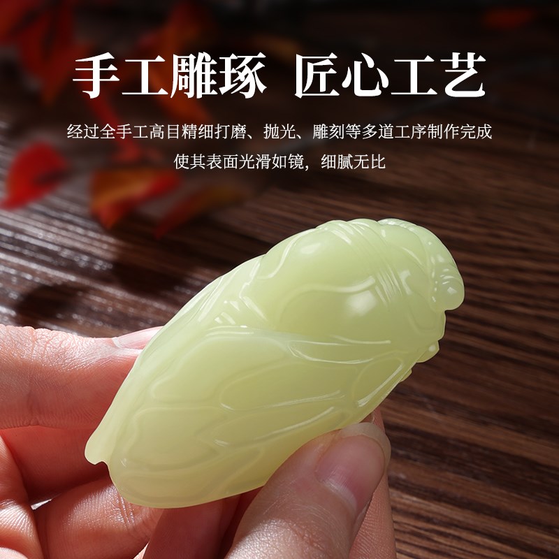 玉石手把件一鸣惊人金p蝉家居客厅桌面摆件装饰送男士盘把古玩礼